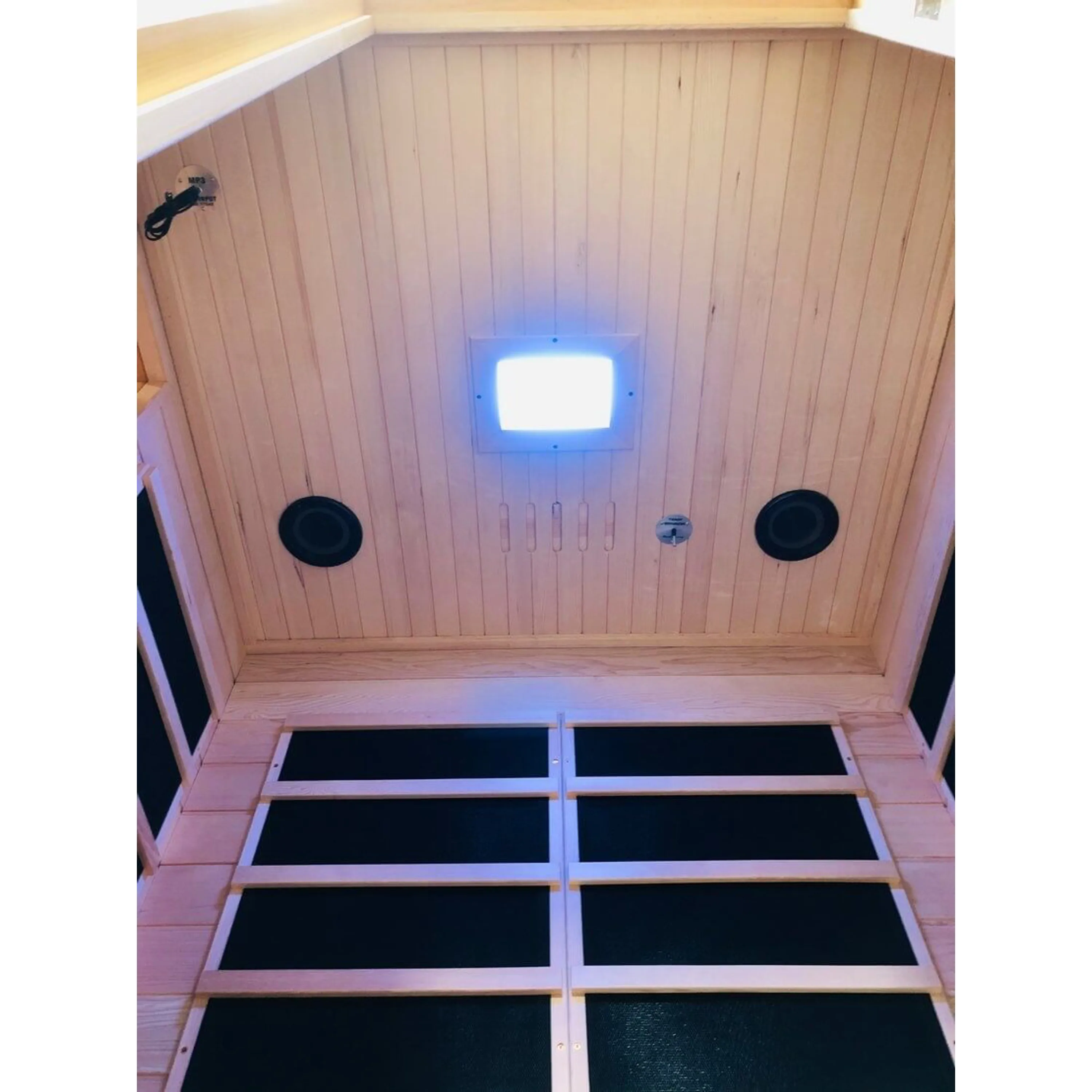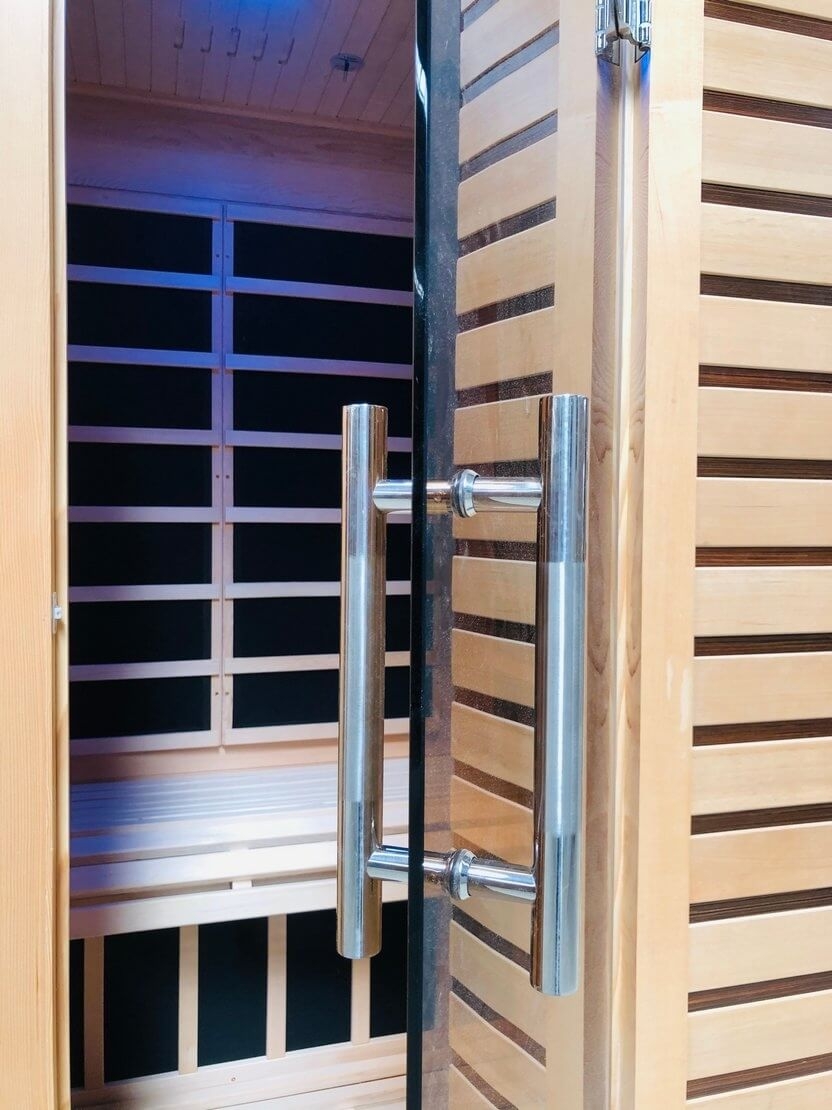 Infrasauna Marimex POPULAR 4001 L sa vďaka svojmu dizajnu hodí do každého interiéru. Pri výrobe bolo použité kvalitné drevo kanadského jedlovca - hemlock (vo vnútri) a Siamskej kasie (zvonku). Infrasauna Marimex POPULAR 4001 L umožňuje vychutnať čaro saunovania dvom osobám naraz. Malé rozmery dovoľujú infrasaunu umiestniť v rodinnom dome aj priestornejšom byte. Dvere s dymovým sklom umožňujú pohodlný výhľad po okolí sauny. Súčasťou výbavy je mp3 prehrávač s bluetooth. Táto infrasauna má už podlahový ohrievač a osvetlenie lavice.