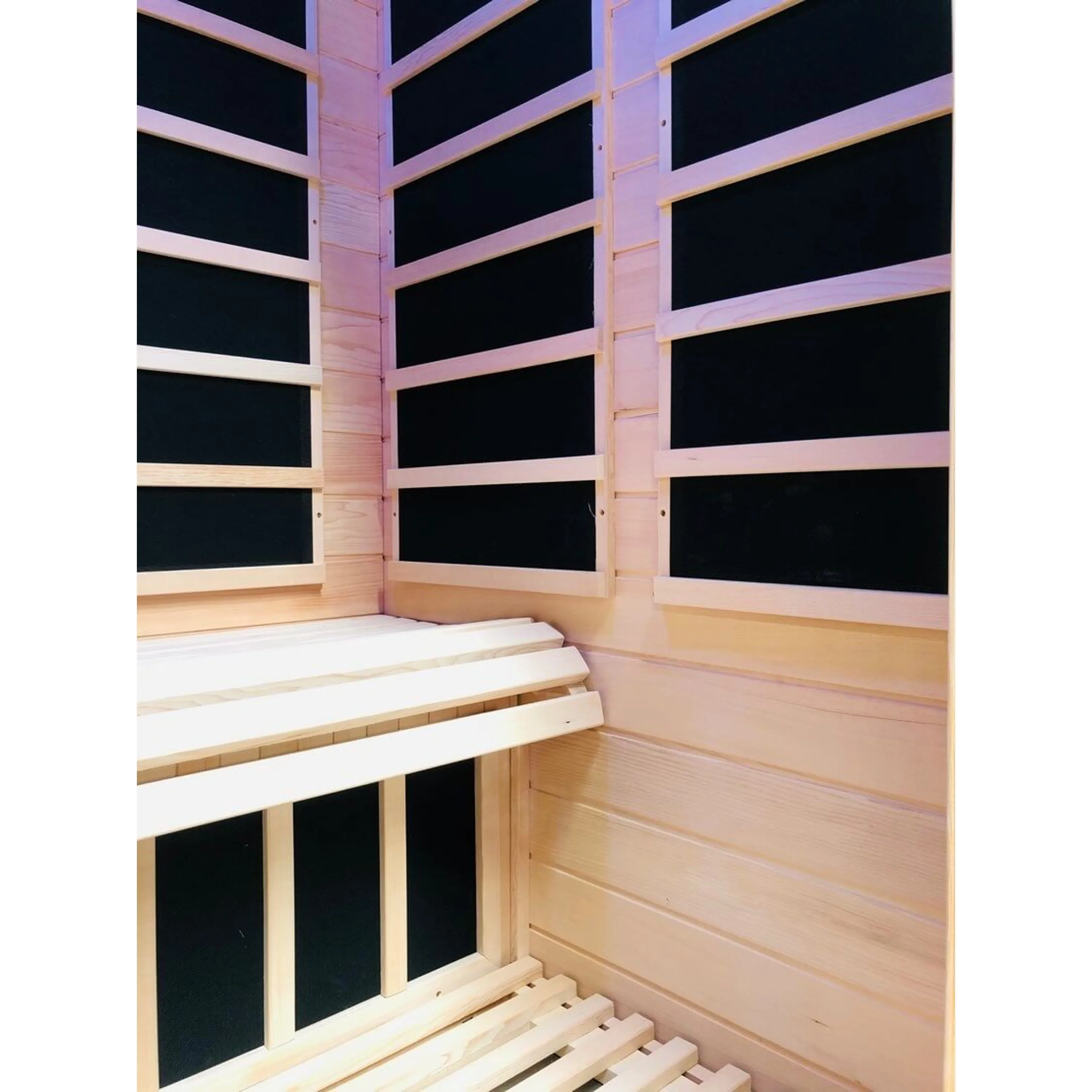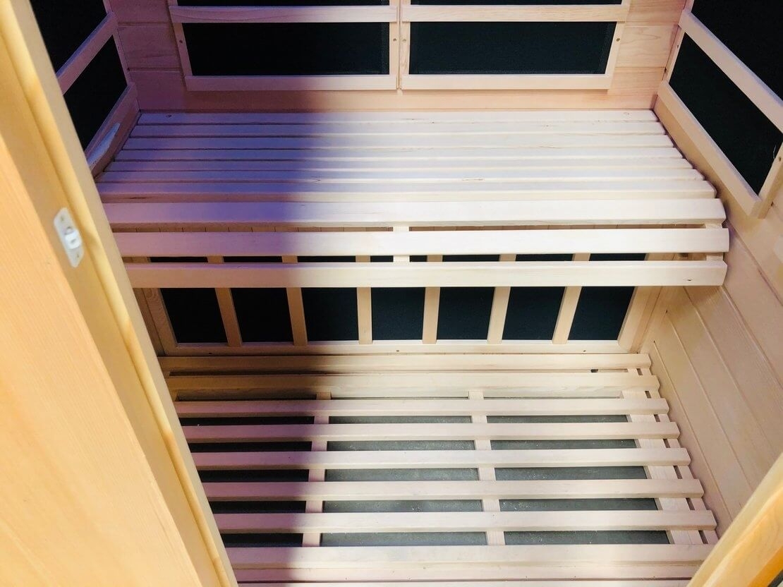 V infrasaune je rozmiestnených sedem karbónových ohrievačov. V porovnaní s inými typmi, karbónové žiariče tvoria tenké pásy, ktoré vyvinú povrchovú teplotu 70 - 170 stupňov Celzia. Karbónové žiariče dosiahnu maximálne teploty pomalšie, naproti tomu majú dlhšiu životnosť (pri saunovaní 3x týždenne cca 90 rokov). Tento typ žiaričov prehreje ľudské telo rovnomerne a do hĺbky. Plného využitia potenciálu infrasauny docielite nastavením teploty na maximálnu teplotu, ktorú umožňuje nastaviť riadiaci panel. Zaistíte tak prevádzku infračervených žiaričov takmer po celú dobu saunovacieho procesu. Miera účinnosti infrasaunovania závisí od intenzity infračerveného žiarenia, nie len na teplote vzduchu. Samotná teplota vzduchu v infrasaune sa pri nastavení na maximum pohybuje okolo 45 - 60 ° C. Pri stanovení nižšej cieľovej temperatúry sa infračervené žiariče vypnú, akonáhle teplota vzduchu dosiahne požadovaného stupňa.