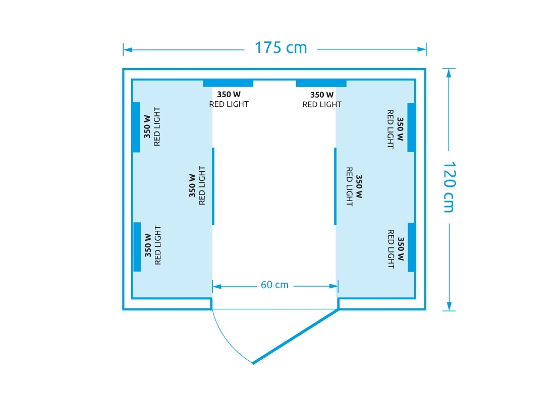V infrasaune je rozmiestnených 8 redlight ohrievačov. Redlight ohrievače pracujú s povrchovou teplotou 250 až 300 stupňov Celzia.