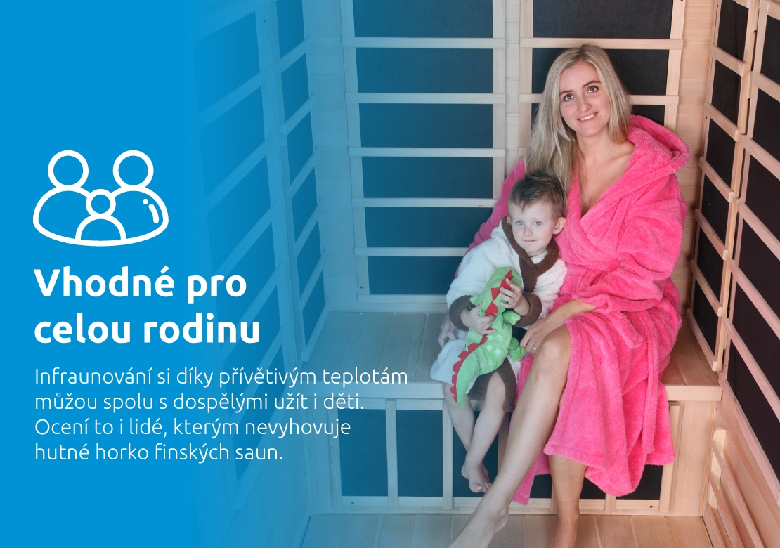 Potenie a detoxikácia prebiehajú pri teplote 45-50 °C. Vďaka tomu je proces infrasaunovania prístupnejší a vhodnejší pre deti.