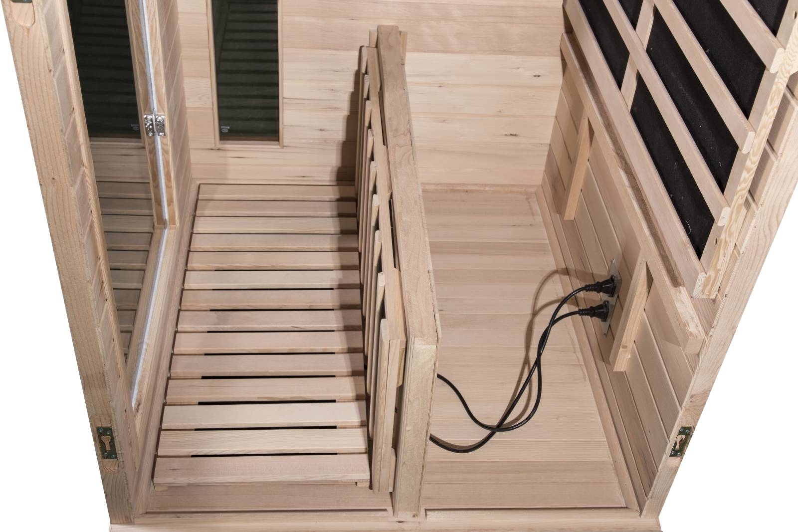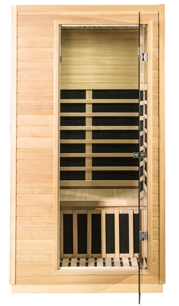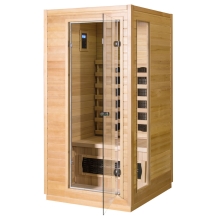 Infrasauna Marimex SMART 1001 M sa vďaka svojmu dizajnu hodí do každého interiéru. Pri výrobe bolo použité kvalitného hemlocku. Infrasauna Marimex SMART 1001 M&umožňuje dokonale vychutnať kúzlo saunovania. Kompaktné rozmery dovoľujú infrasaunu umiestniť v rodinnom dome aj priestrannejšom byte. Sklenené dvere umožňujú pohodlný výhľad po okolí sauny. Táto infrasauna obsahuje vstavaný karbónový podlahový ohrievač.