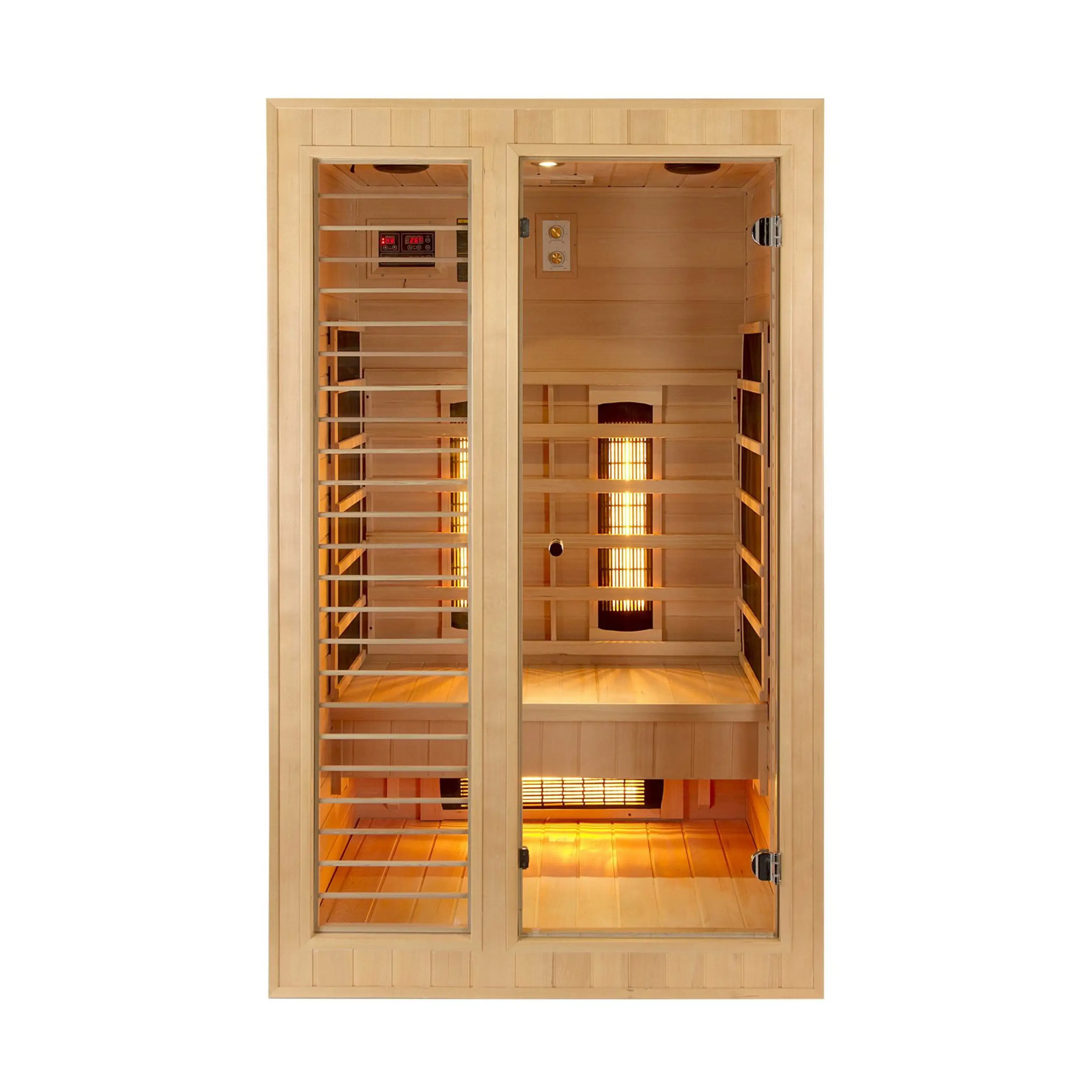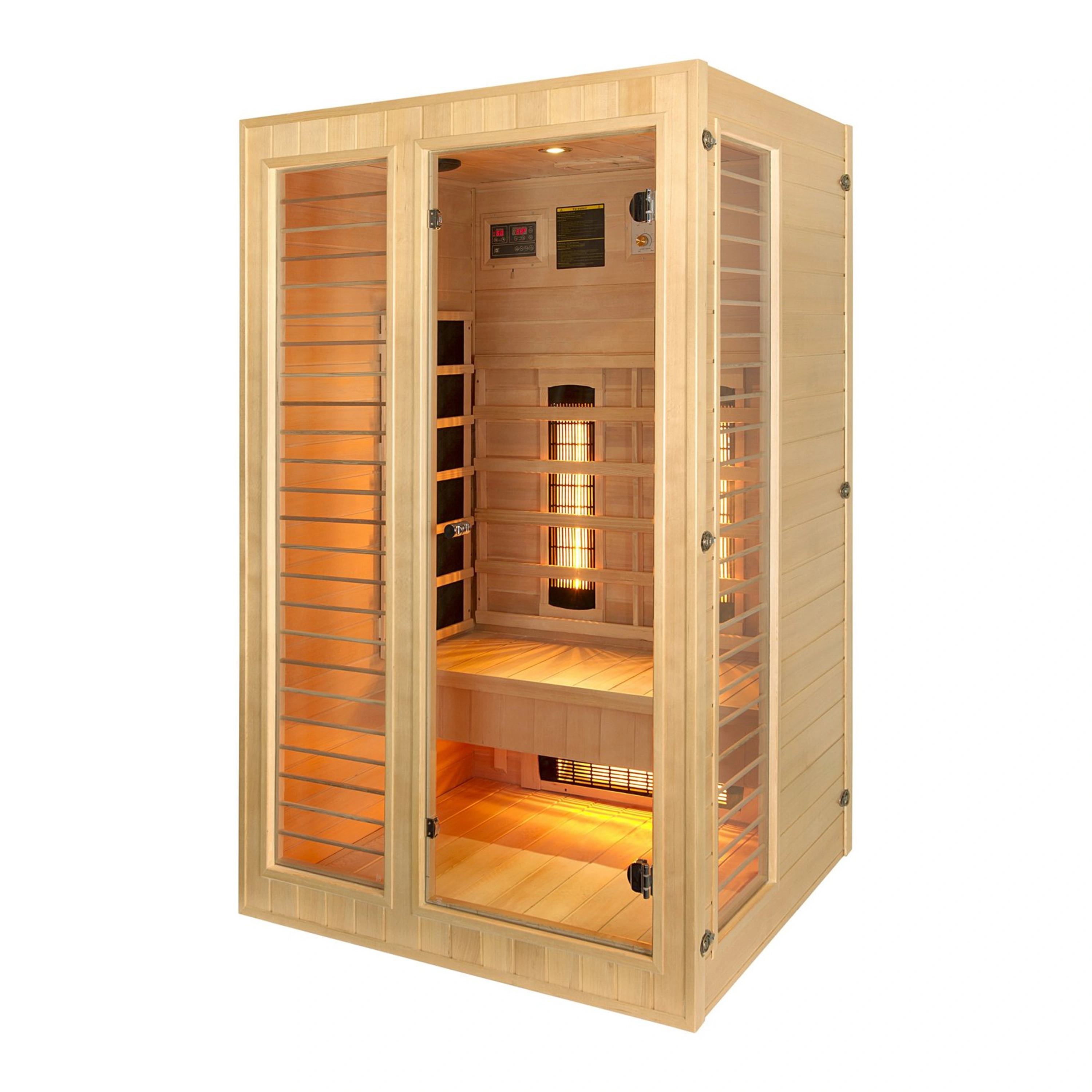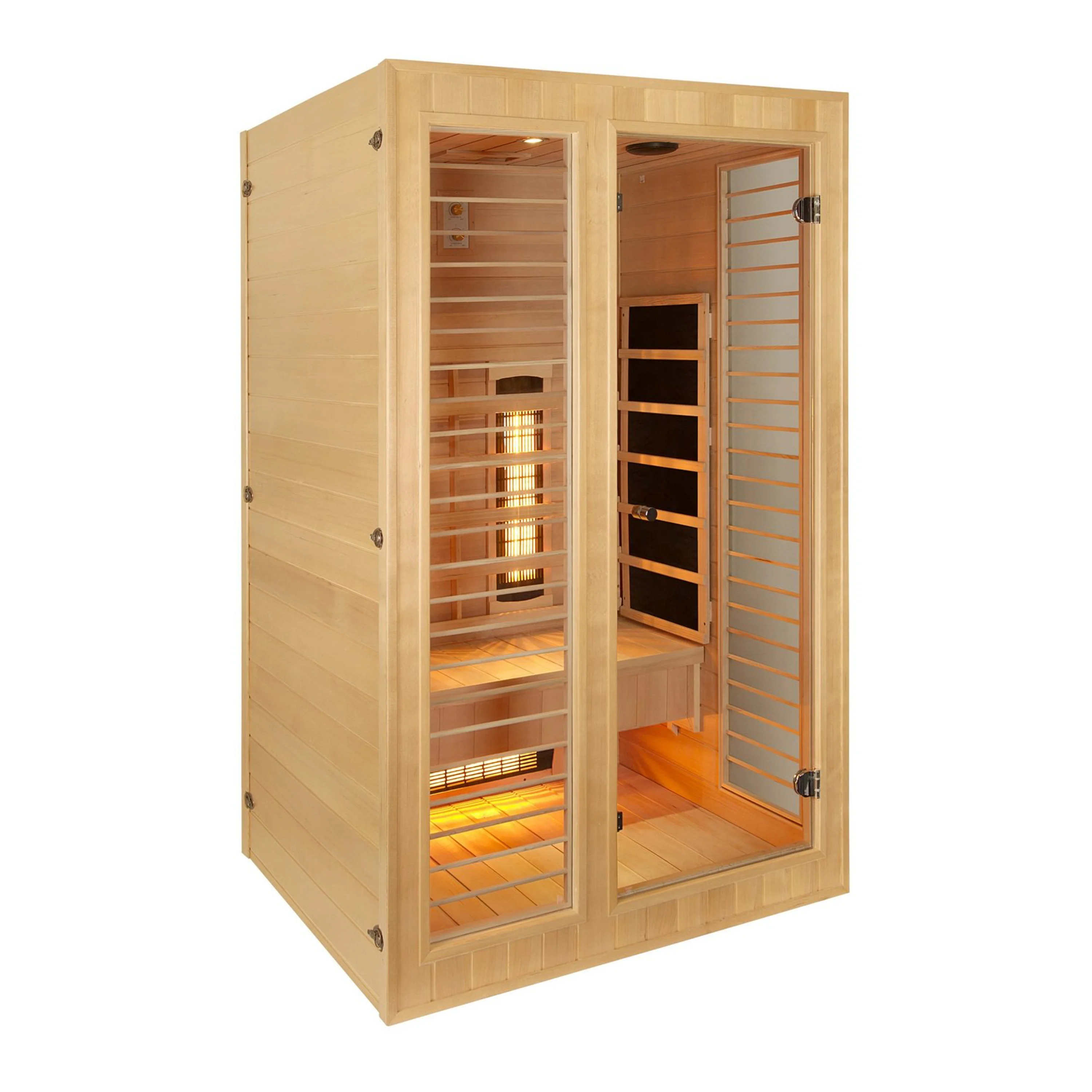 V infrasaune je rozmiestnených šesť žiaričov (3x karbónové, 3x Redlight s plynulou reguláciou výkonu), vrátane vykurovacieho telesa podlahového. V porovnaní s inými typmi karbónové žiariče tvoria tenké pásy, ktoré vyvinú povrchovú teplotu 70 - 170 stupňov Celzia. Karbónové žiariče dosiahnu maximálne teploty pomalšie, naproti tomu majú dlhšiu životnosť (pri saunovaní 3x týždenne cca 90 rokov). Tento typ žiaričov prehreje ľudské telo rovnomerne a do hĺbky.