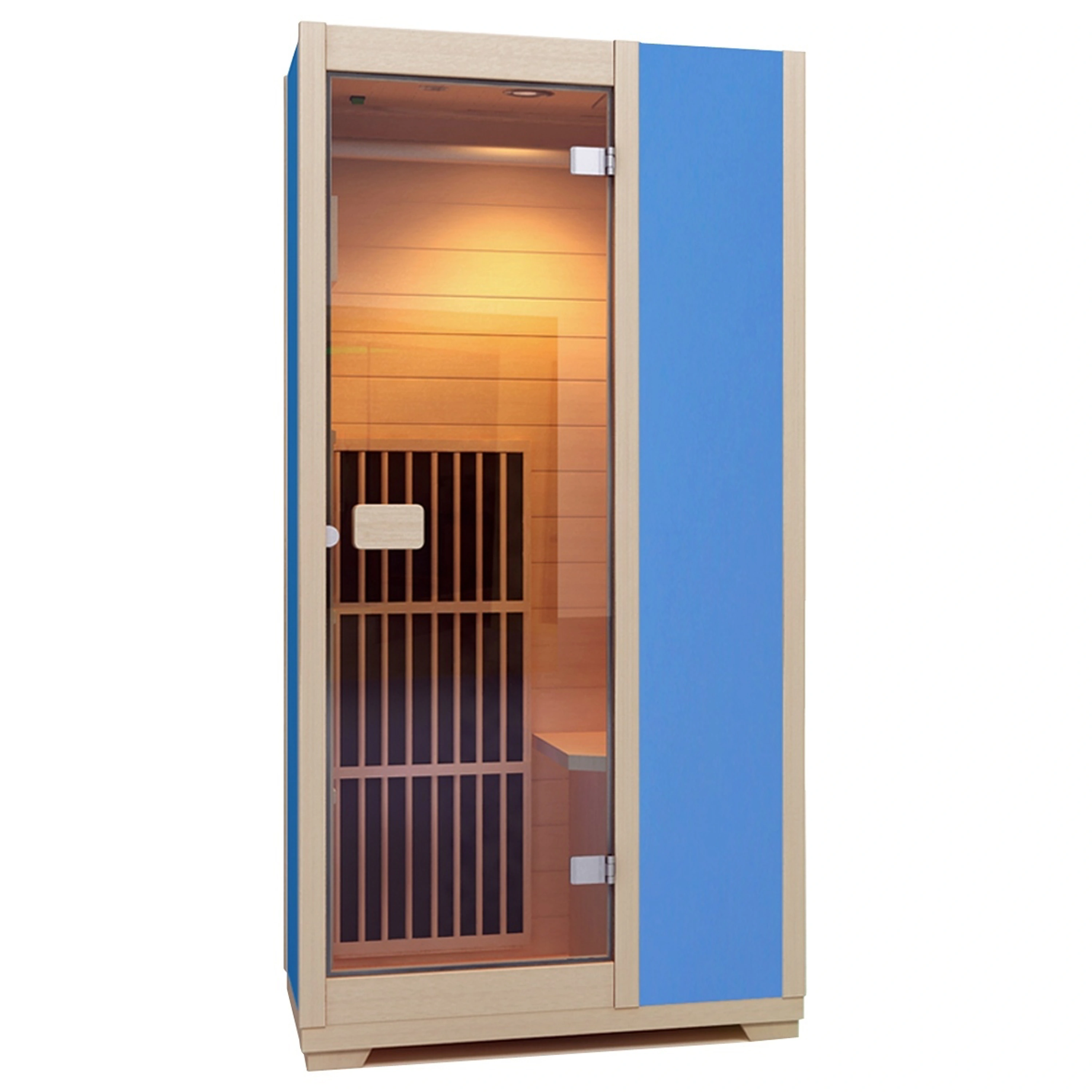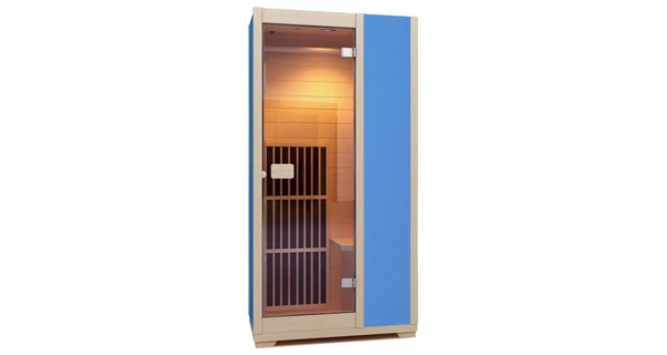 hodí do každého interiéru. Pri výrobe bolo použité kvalitné drevo kanadského jedľovca - hemlock. Infrasauna Marimex Trendy 4001 M umožňuje vychutnať si kúzlo saunovania jednej osoby. Malé rozmery dovoľujú infrasaunu umiestniť v rodinnom dome ale aj v priestornejšom byte. Sklenené dvere umožňujú pohodlný výhľad po okolí sauny. Infrasauna patrí do skupiny farebných infrasáun Marimex Trendy 4001 M a má modrú farbu.