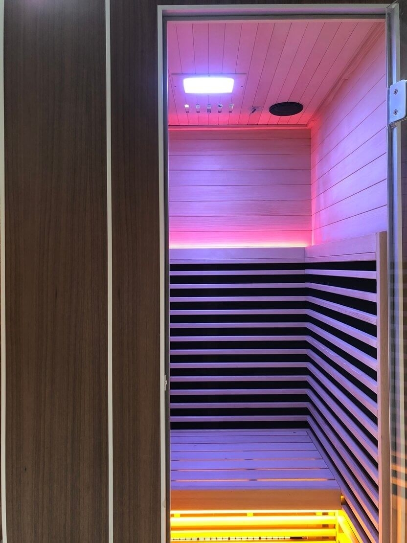 V infrasaune je rozmiestnených 7 karbónových ohrievačov a 1 Redlight ohrievačmi.