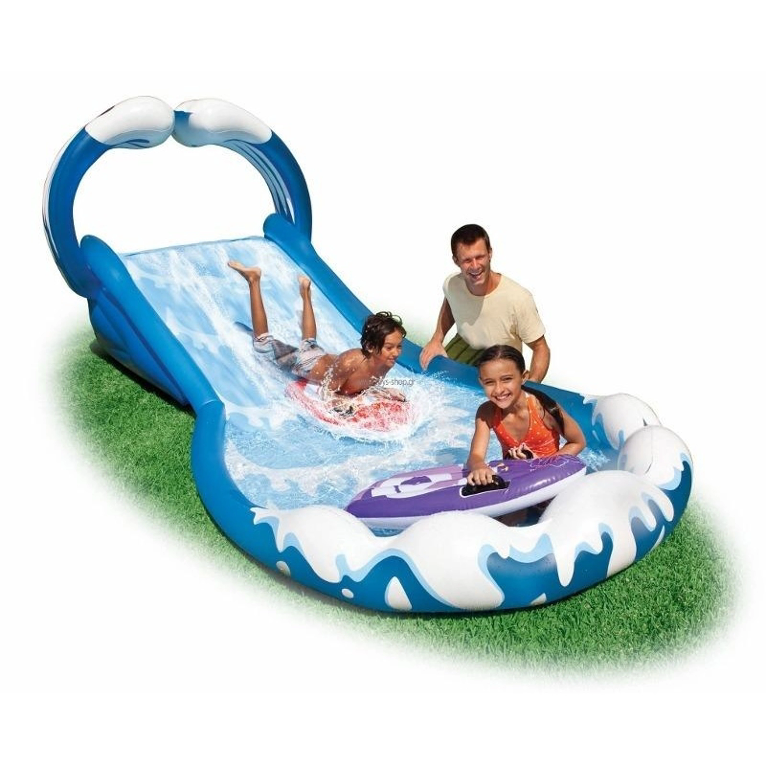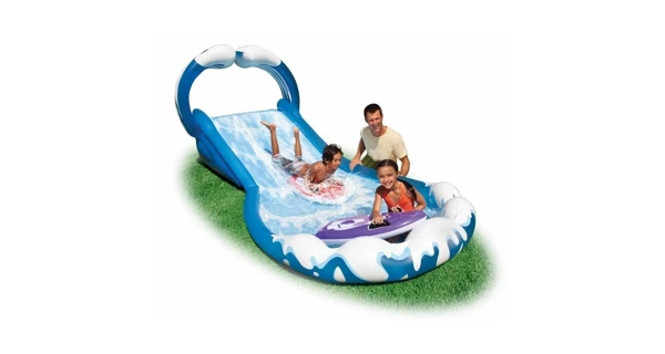 S nafukovacou kĺzačkou Surf môžu malé deti surfovať priamo doma na záhrade. Stačí pripojiť záhradnú hadicu, naskočiť na niektorý z dvoch surfov a jazda sa môže začať. Kĺzačka je nafukovacia, takže bezpečnosť malých surferov je zaistená. Dlhodobá životnosť je zaručená použitím pevného vinylu.