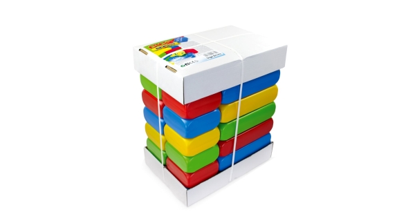 Veľké farebné stavebné kocky z odolného plastu. Kocky sú určené pre najmenších staviteľov.