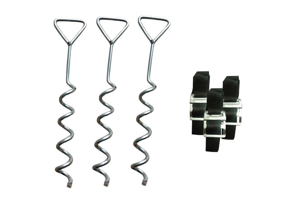 Pri silnom až extrémnom vetre alebo pri náhlych nárazoch vetra nemusí byť ukotvenia účinné. Pri očakávaní silného vetra odporúčame z trampolíny demontovať ochrannú sieť a trampolínu dodatočne zabezpečiť (napr. Betónové bloky na nohy a pod.)
