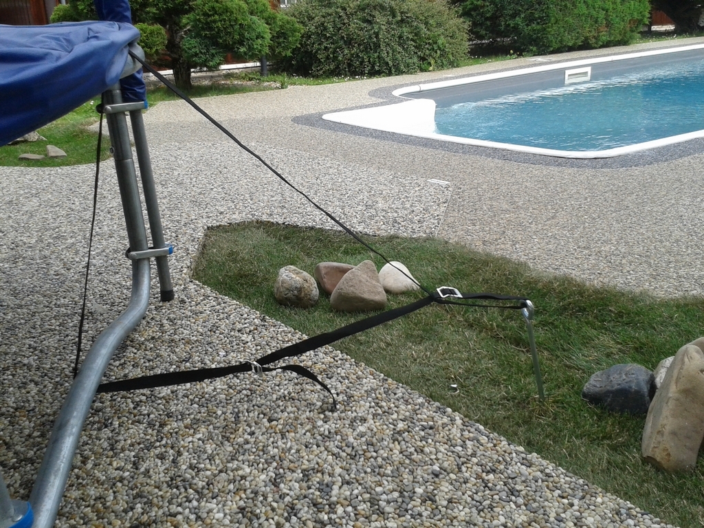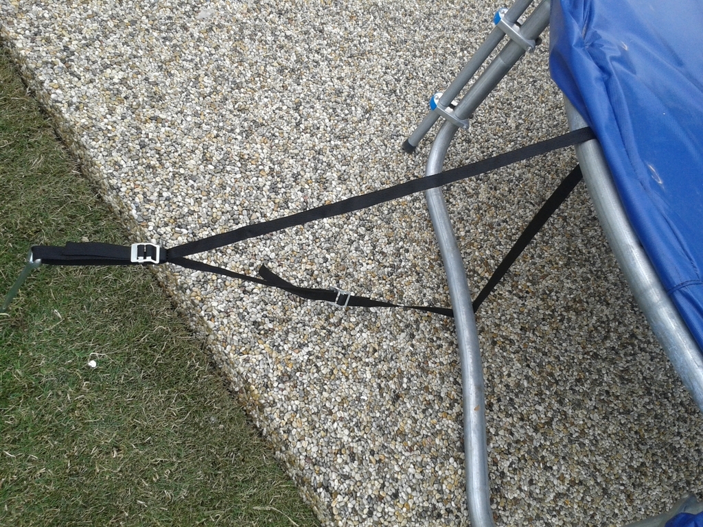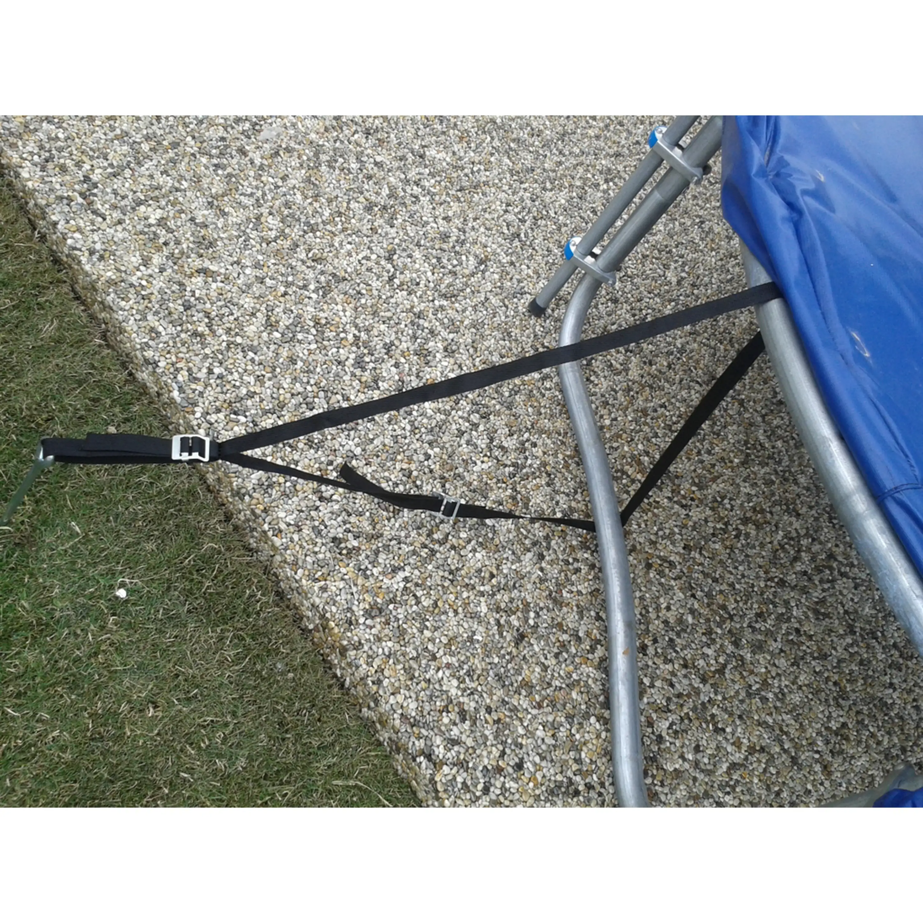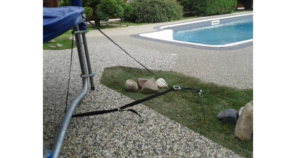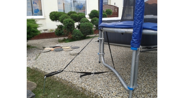 S kotviacou sadou je možné rýchlo a jednoducho pripevnit trampolínu k zemi a zaistiť tak jej dokonalú stabilitu. Sada sa skladá zo spojovacích pásov s prackami a bodákmi s protihrotom. Po zaistení kotviacou sadou trampolína odolá aj silnému vetru. Sadu je možné použiť na zpevnenie všetkých typov trampolín Marimex.