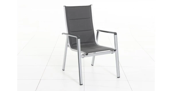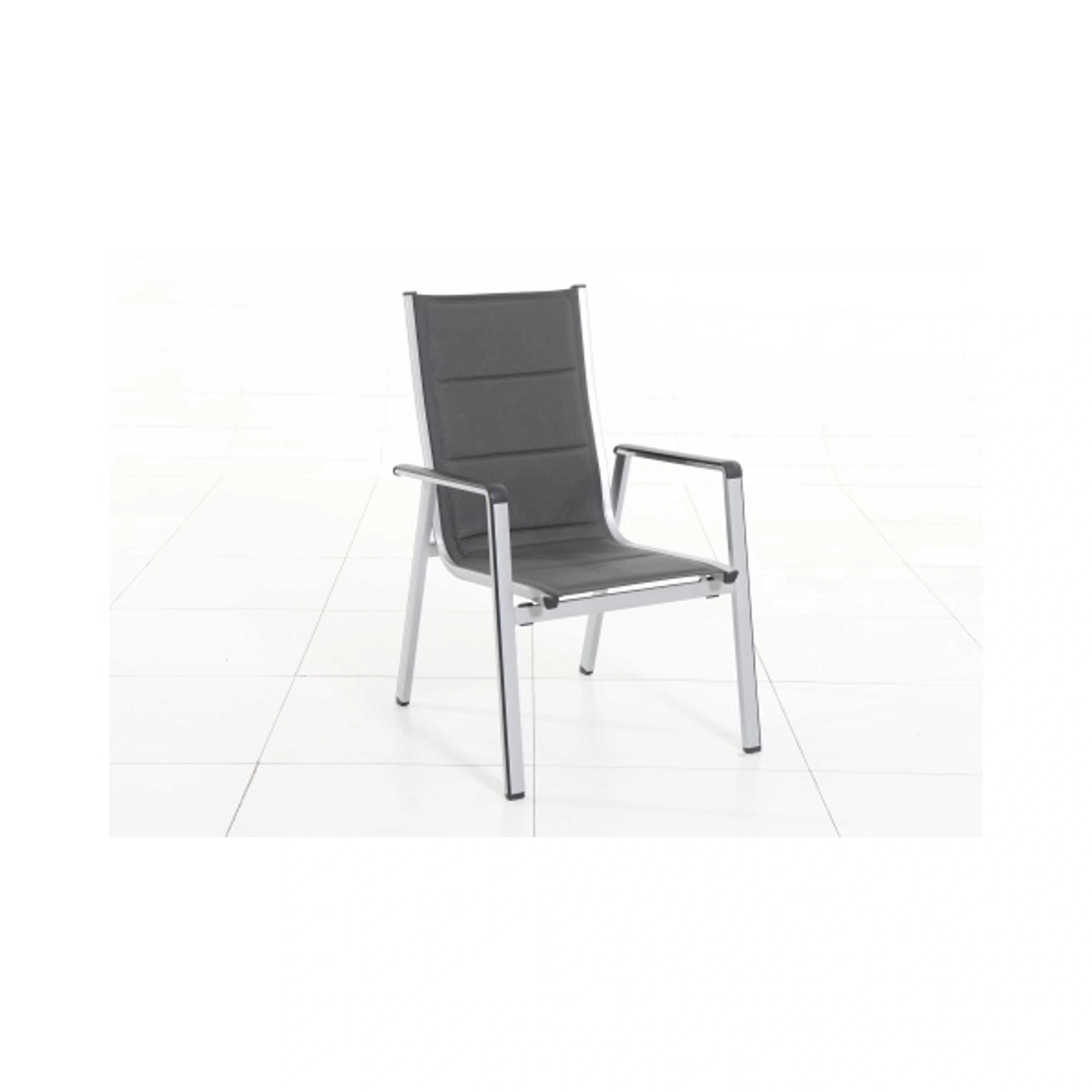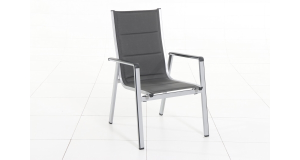 Stohovateľné pevné kreslo z hliníka má veľmi ľahkú hliníkovú konštrukciu pre jednoduché prenášanie Plastové lakťové opierky a oporná časť aj sedák s vrstveným polstrovaním umožňujú dokonalý odpočinok. Kreslo je odolné voči slnečnému žiareniu a vode, vyznačuje sa stálofarebnosťou.