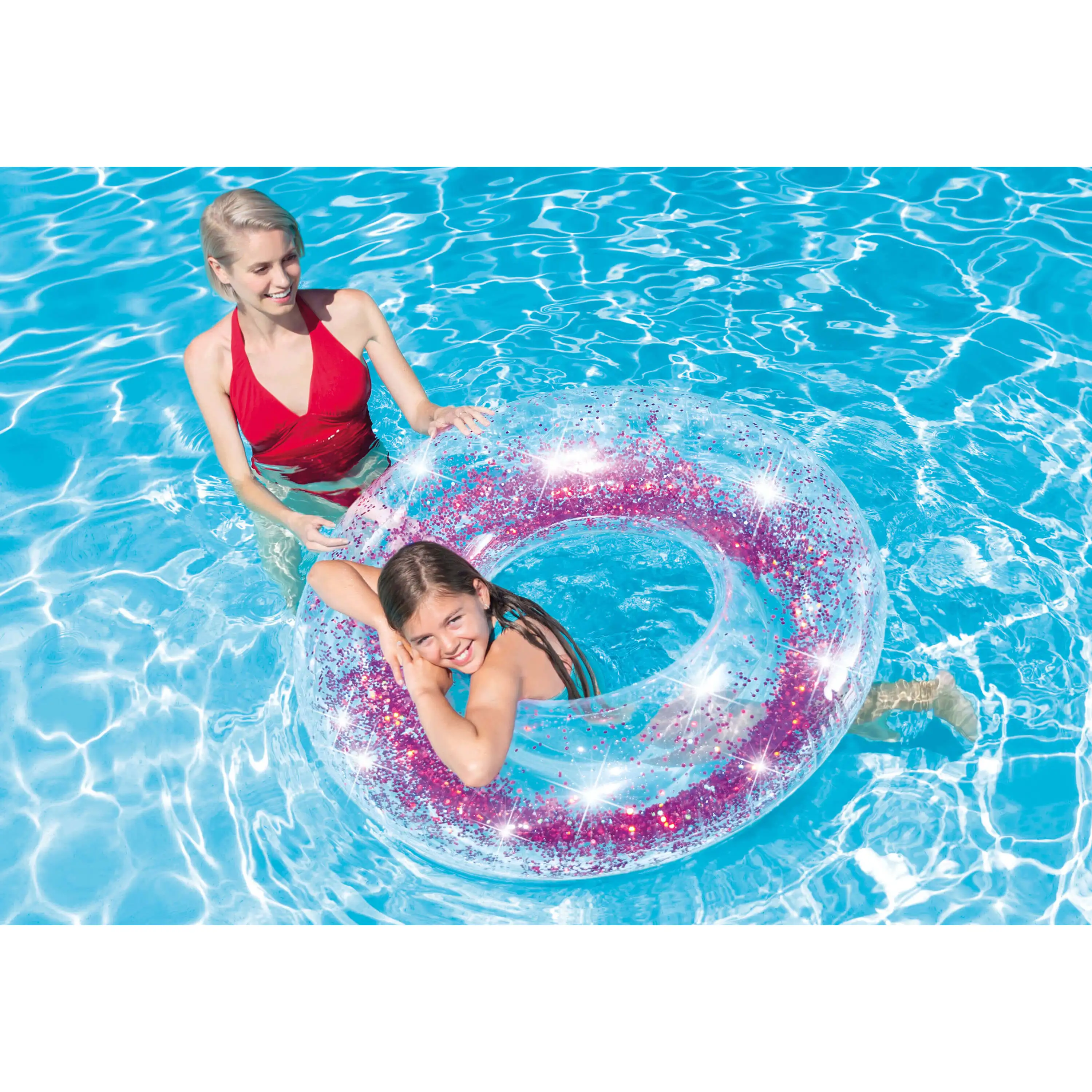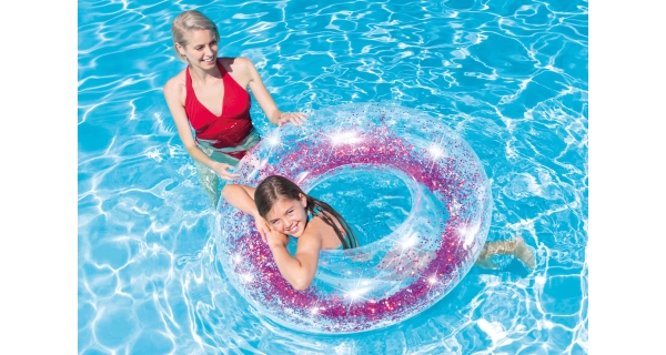 Detský nafukovací kruh s priemerom 107 cm s trblietavým motívom.