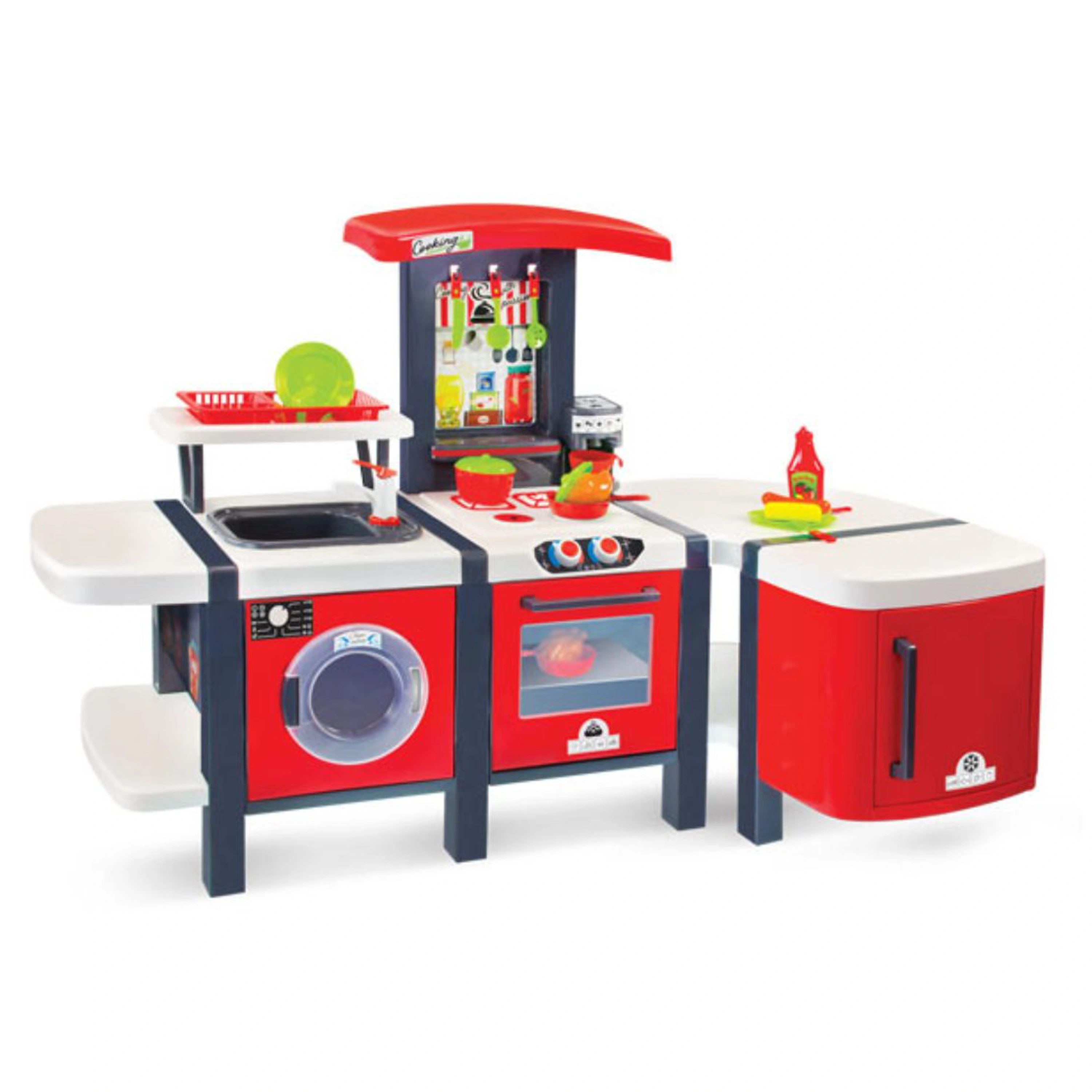 Balenie obsahuje: kuchynku vrátane sporáku, chladničky, práčky, kávovaru, drez z batériou a odkvapkávačom a 26 ks príslušenstva. |
