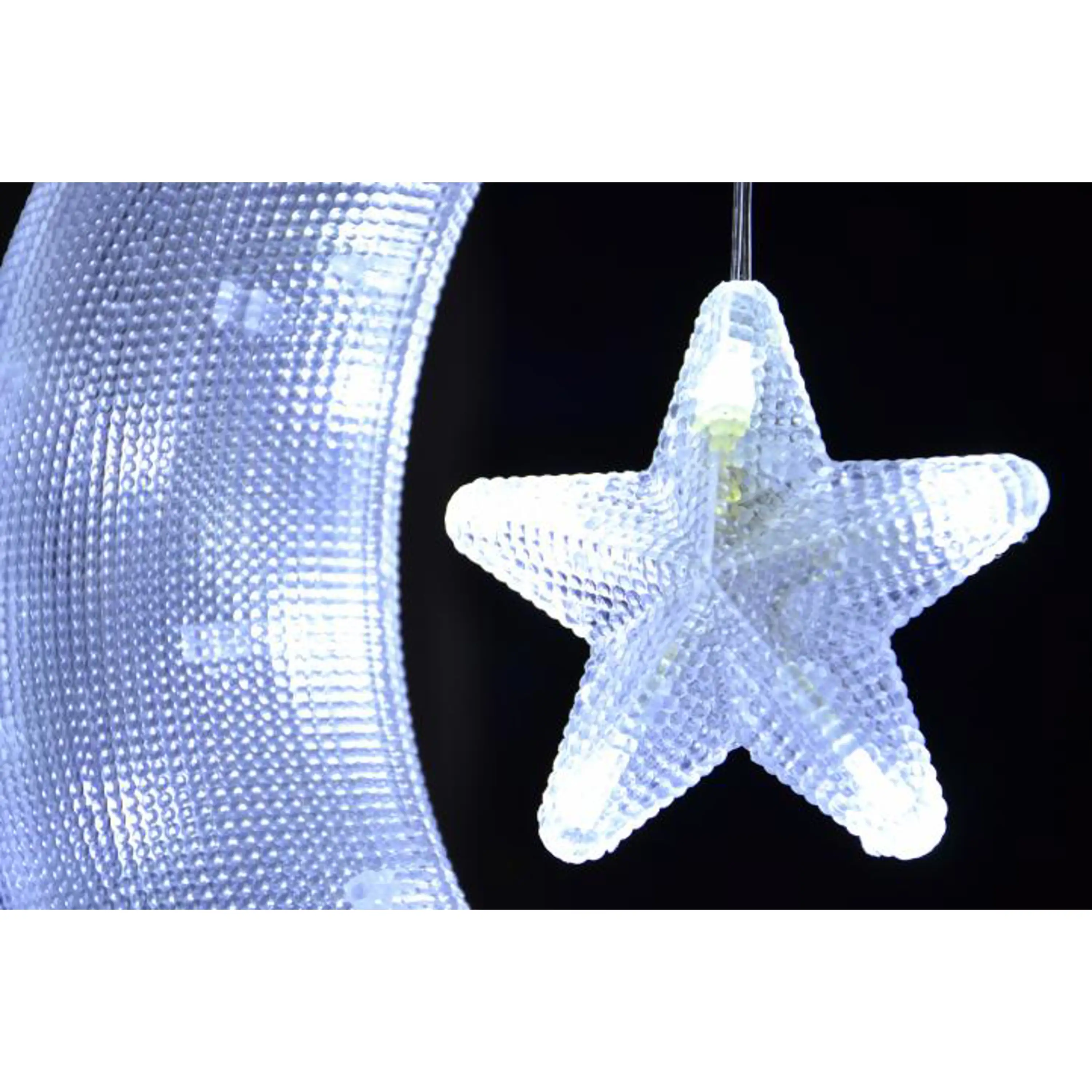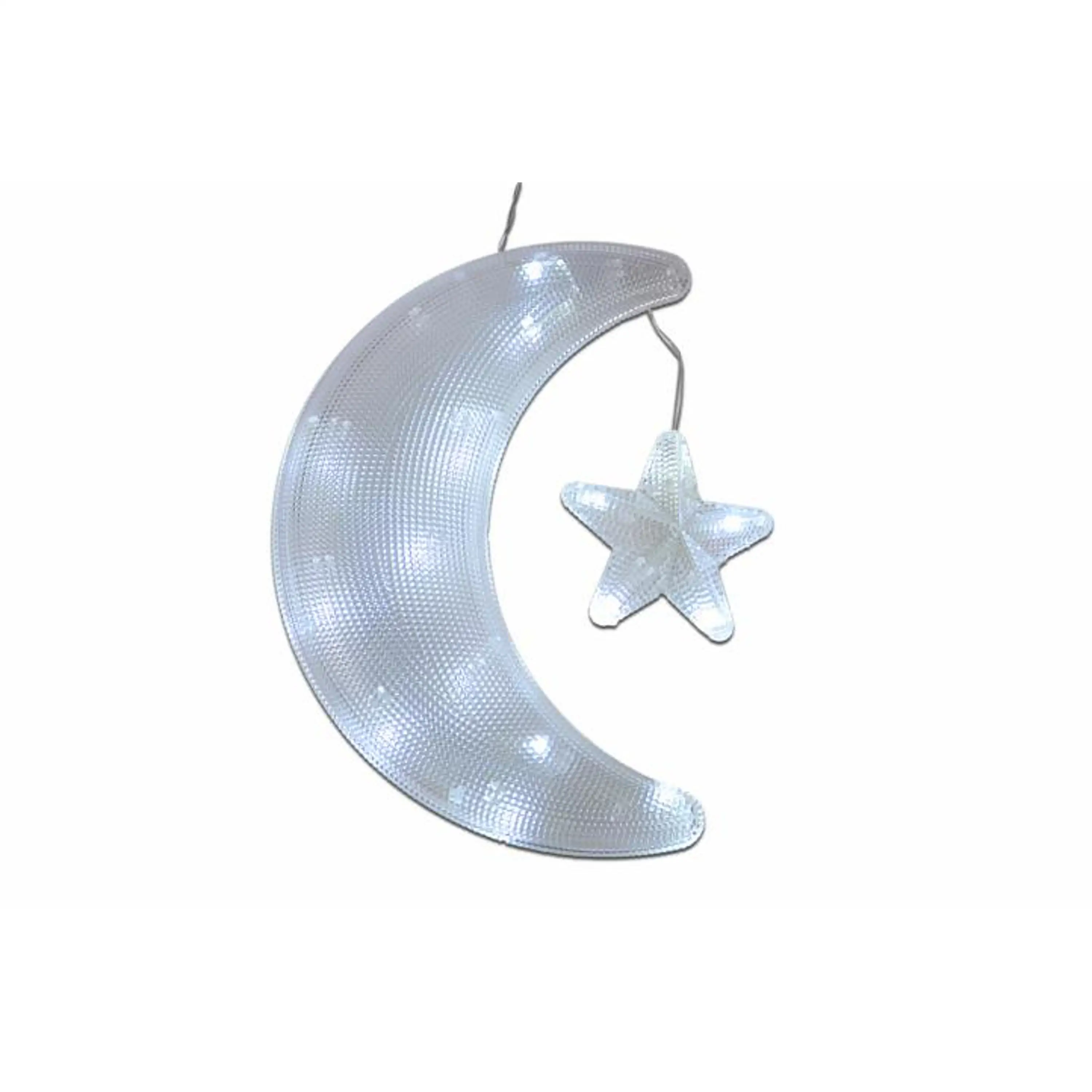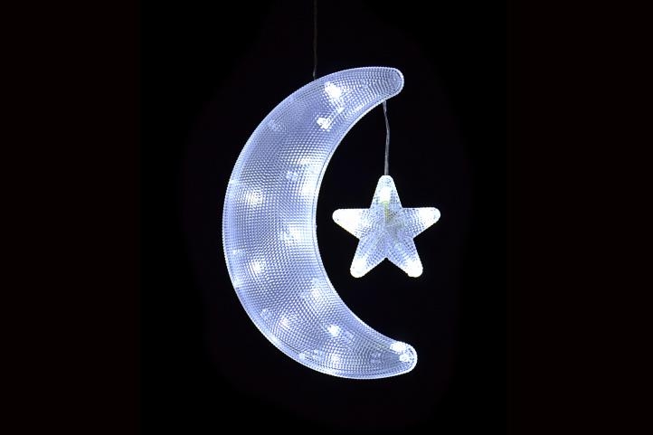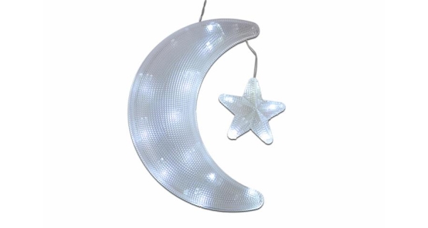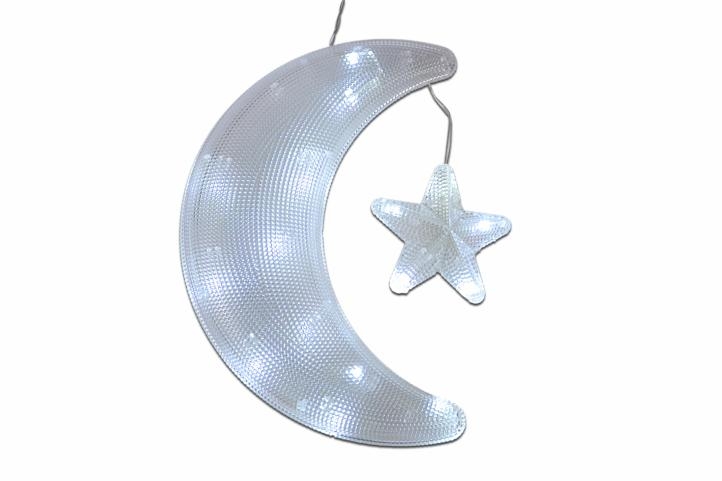 Táto krásna vianočná dekorácia je vhodná na umiestnenie do okna. V mesiaci s hviezdou svieti 18 studeno bielych LED diód, ktoré sú až o 90% úspornejšie ako klasické žiarovky.