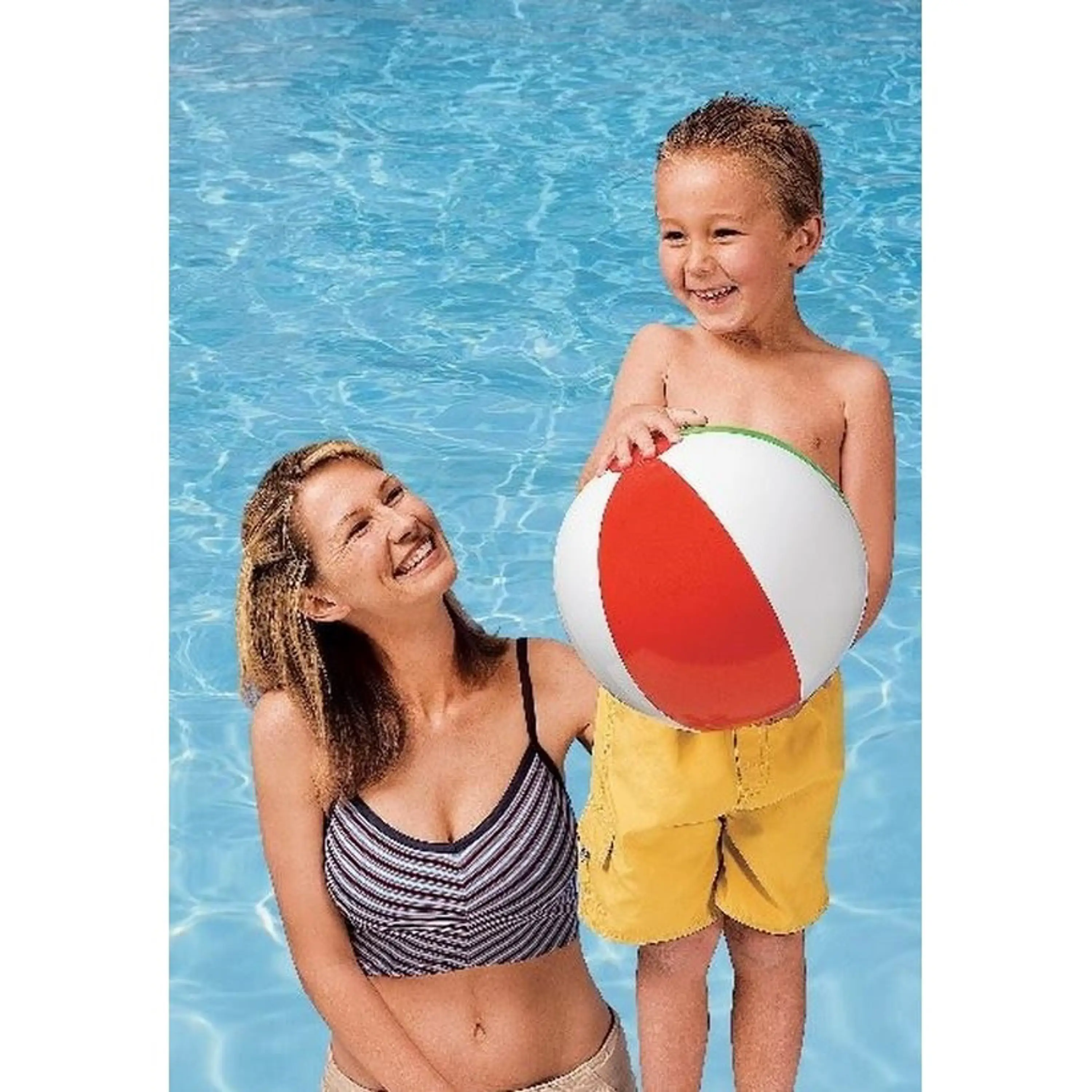 Nafukovacia lopta s priemerom 41 cm by nemala chýbať žiadnemu chlapčekovi či dievčatku pri vonkajších radovánkach pri bazéne.