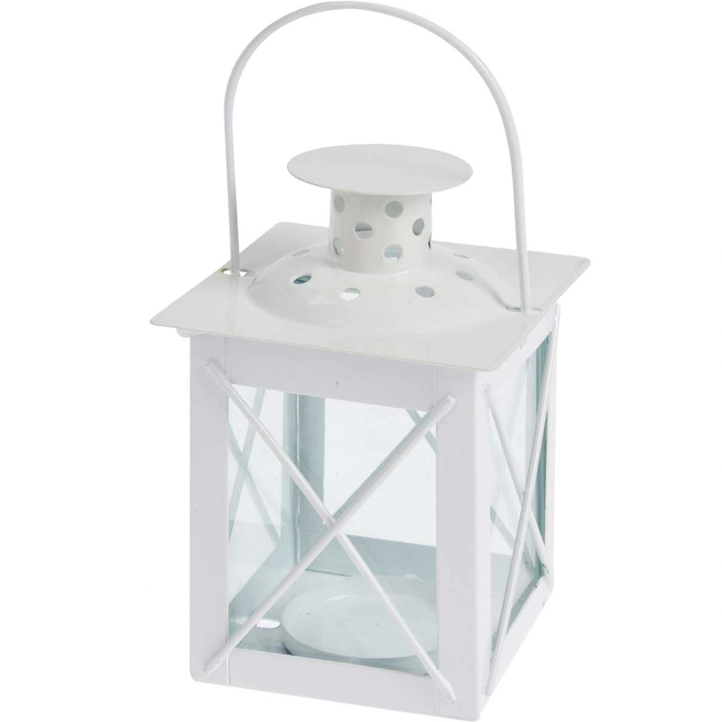 Biela plechová lucernička na sviečku.