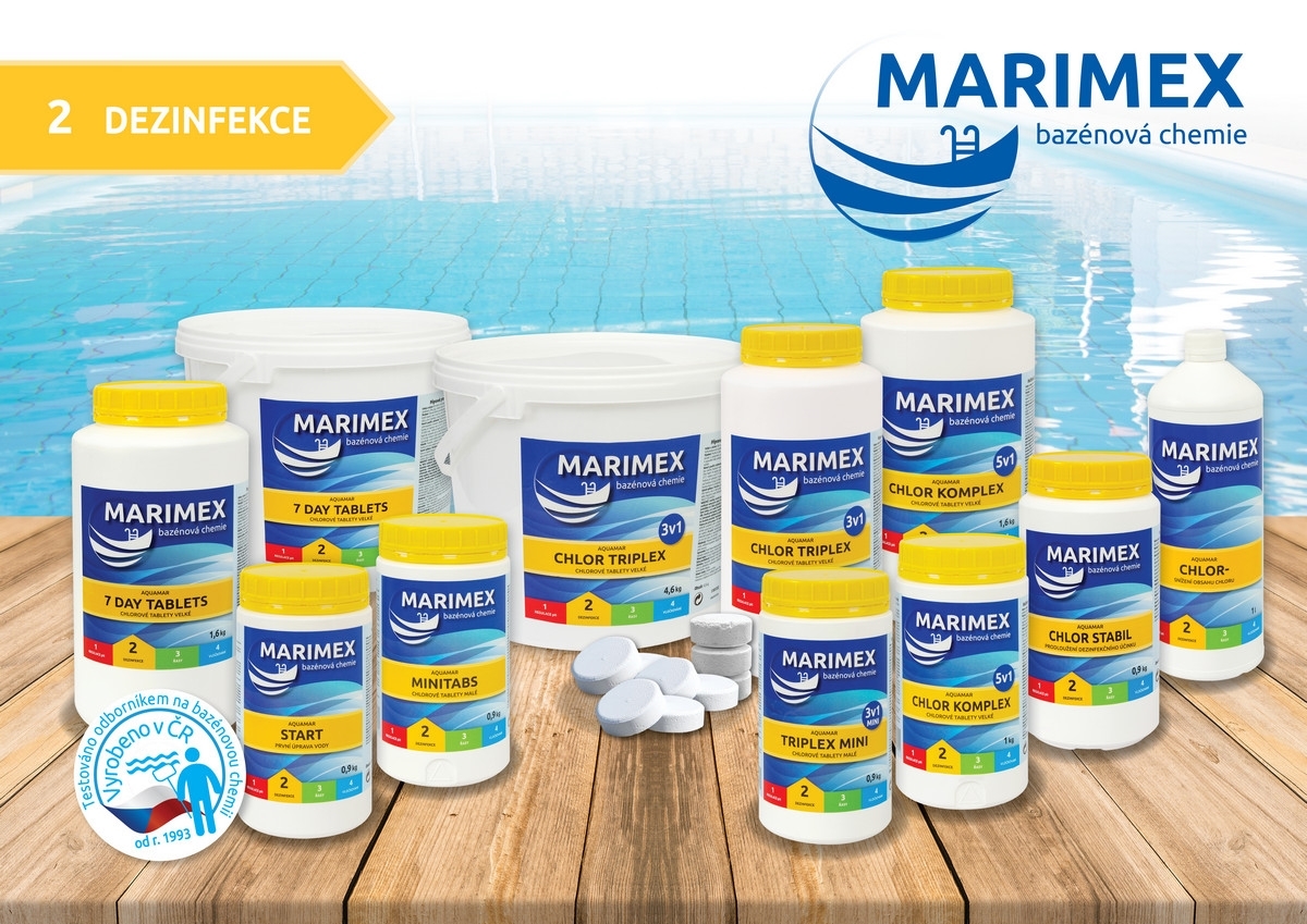 Malé dezinfekčné pomaly rozpustné tablety na priebežné udržiavanie koncentrácie chlóru po použití granulátu Marimex Quick Chlór. Slúži ako protiporastový prostriedok účinný proti riasam, plesniam, baktériám a vírusom.