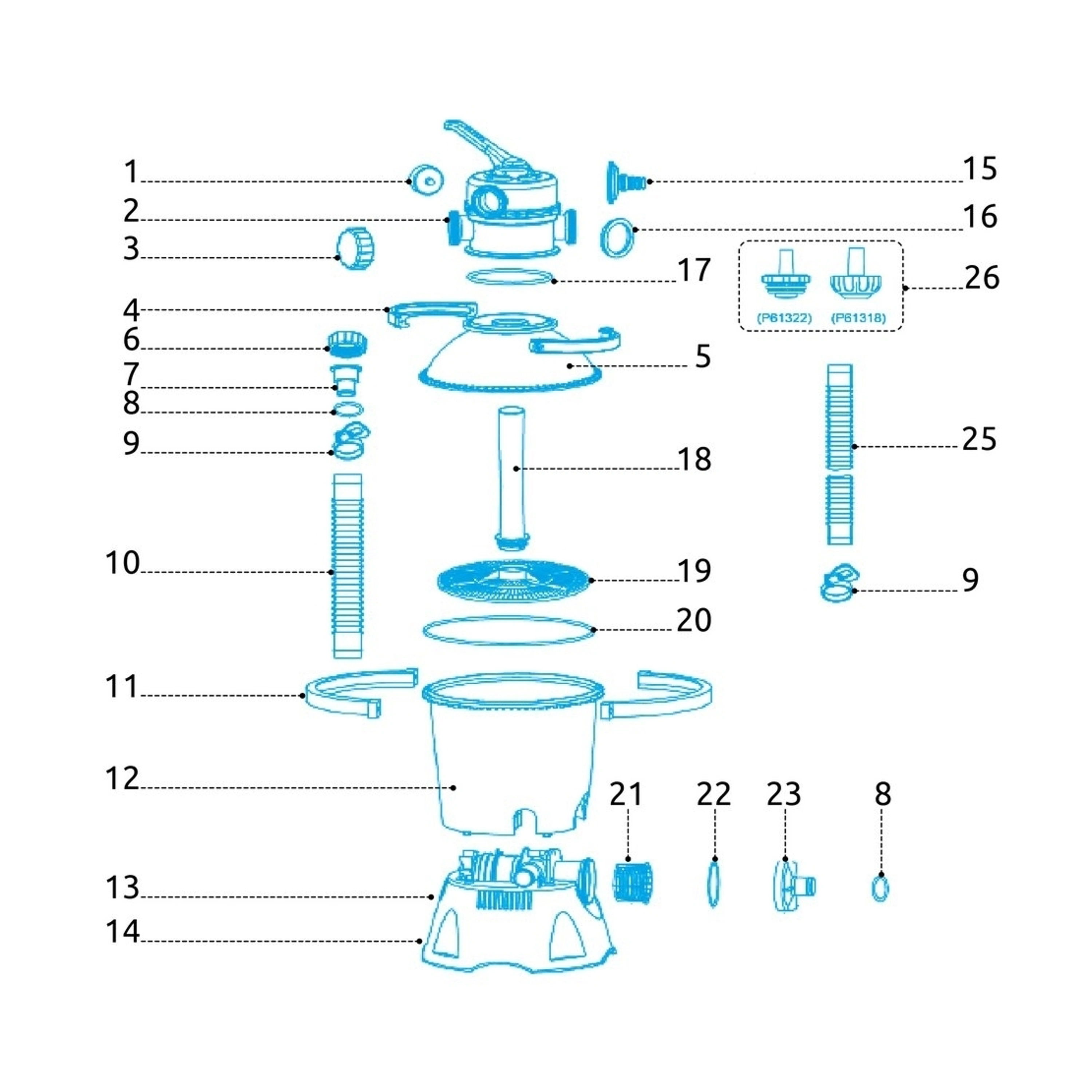 Spodná časť filtračnej nádoby pre Prostar 2. Jedná sa iba o plastový výlisok nádoby, bez ostatného príslušenstva. Farba dielu je modrá.