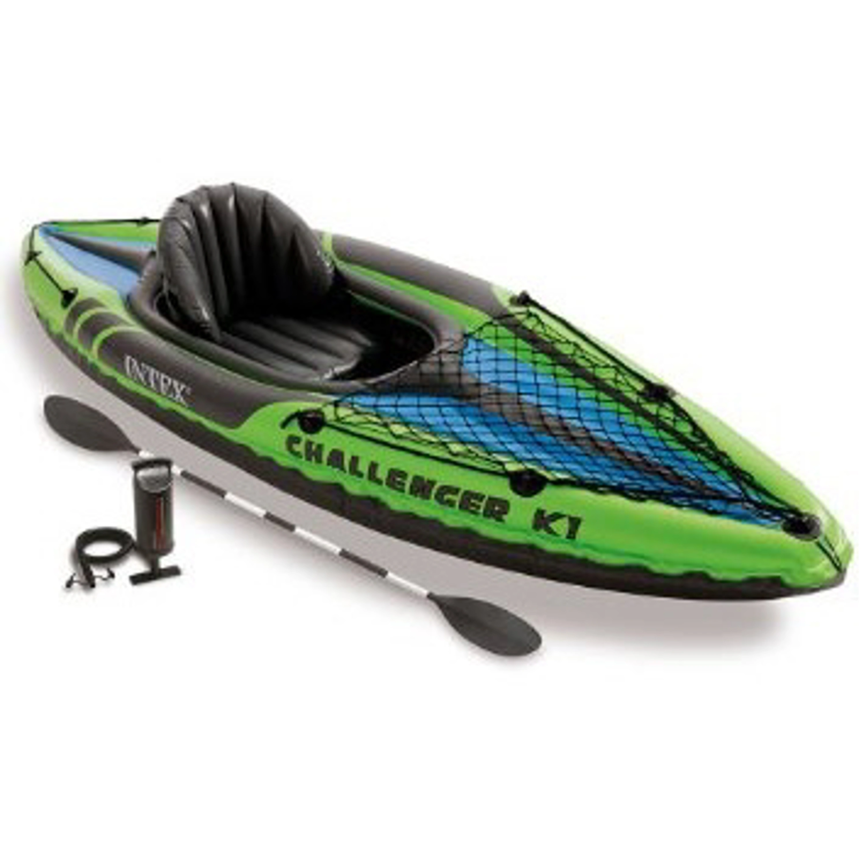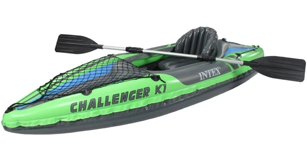 Nafukovací kajak Intex Challenger K1 pre jednu osobu s nízkym profilom je vhodný na jazerá, mierne rieky a kľudné more. Dodávaný vrátane pádiel a ručnej pumpy. Kajak ponúka dostatok priestoru pre príjemné sedenie v kokpite. Veľký a pohodlný kokpit pre ľahké vystupovanie a nastupovanie. Nastaviteľné sedadlo s opierkou chrbta. Nafukovacie vystužené dno pre stabilitu a pevnosť. Dve vzduchové samostatné komory.