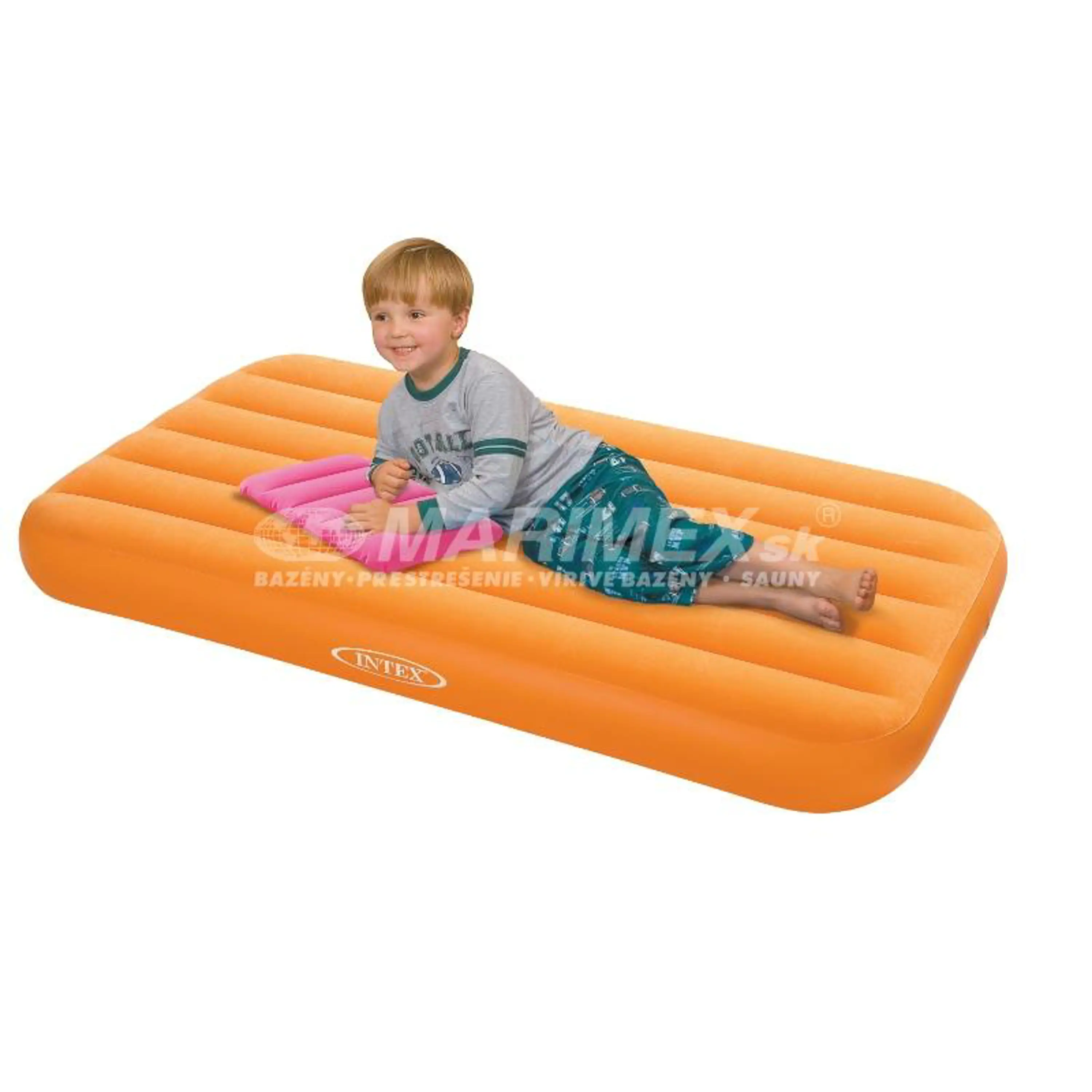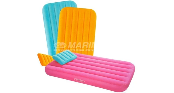 Detský nafukovací matrac s vankúšikom vhodný pre všetky deti od 3 do 10 rokov. Jemný povrch na dotyk pre ešte väčšie pohodlie. Zmena farby vyhradená výrobcom.
