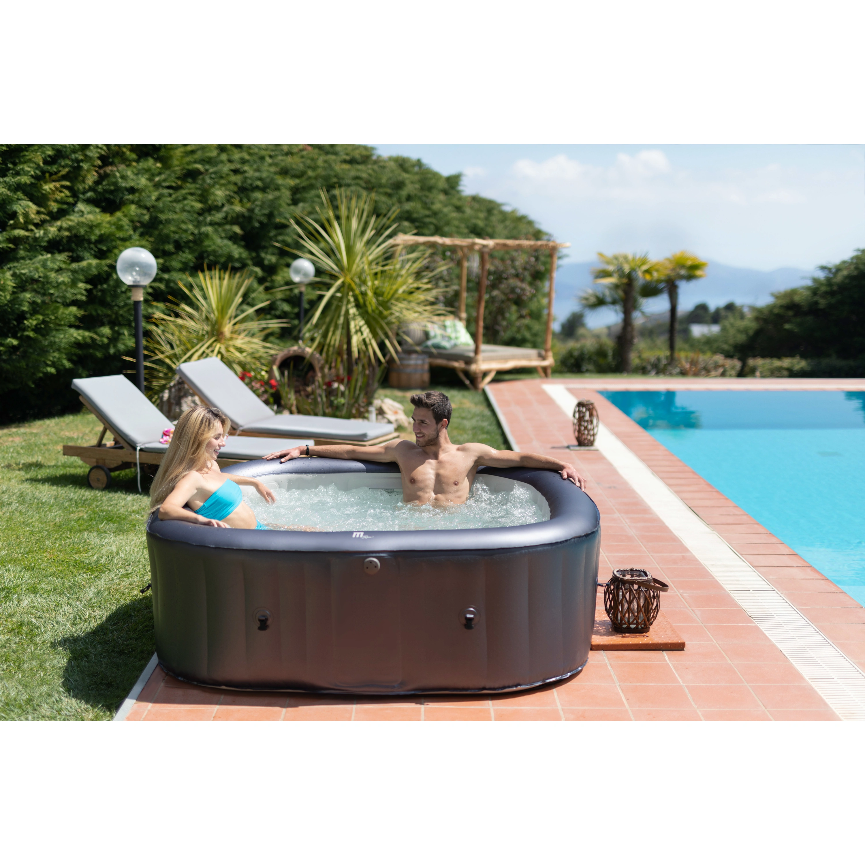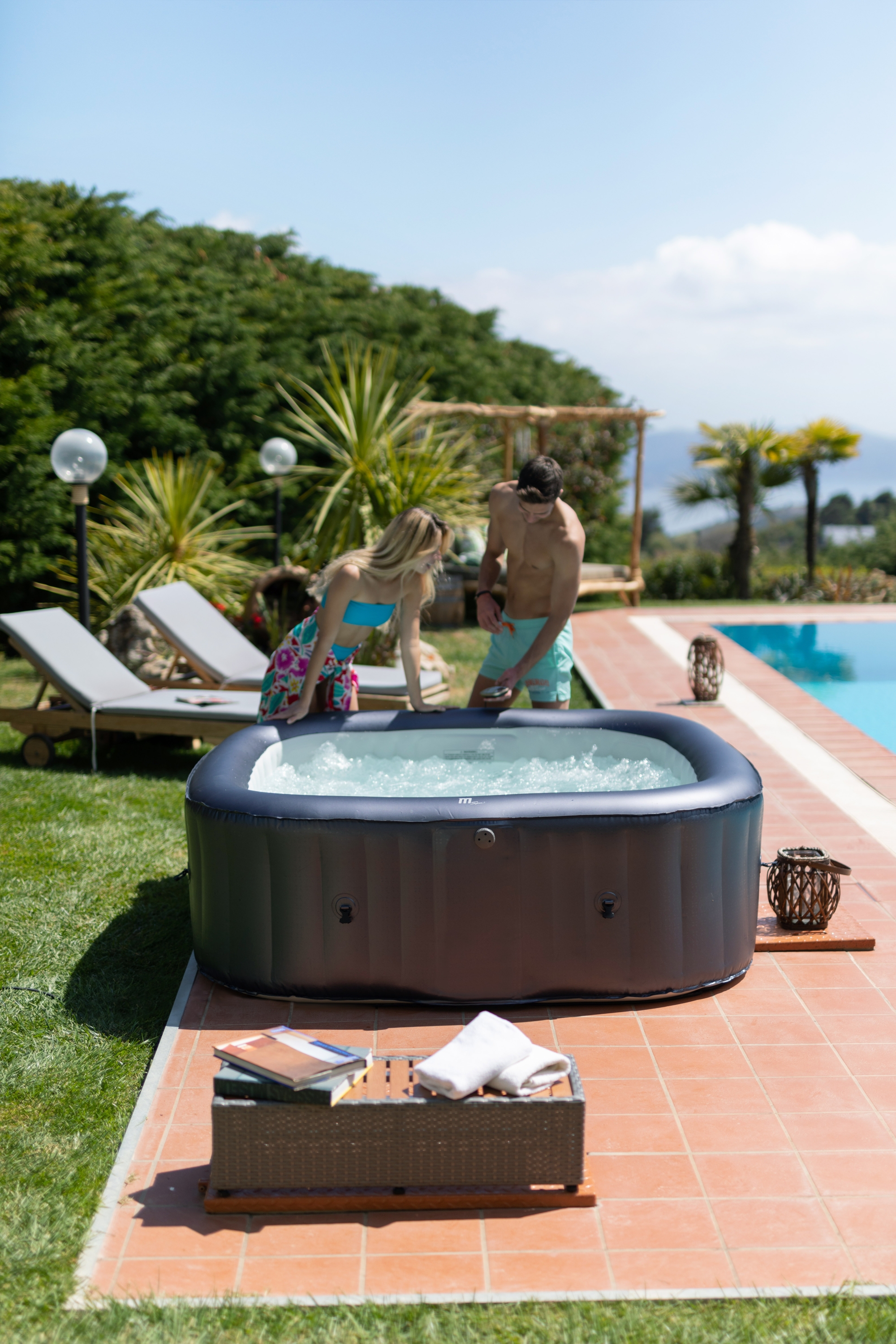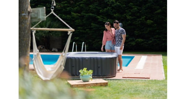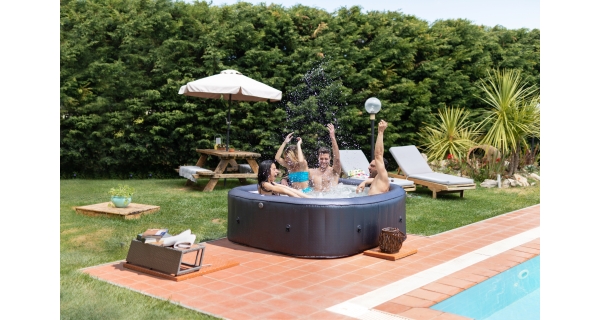 Stačí nájsť rovný terén, nafúknuť vírivku elektrickou pumpou a naplniť ju vodou. Vírivku zostavíte za desať minút.