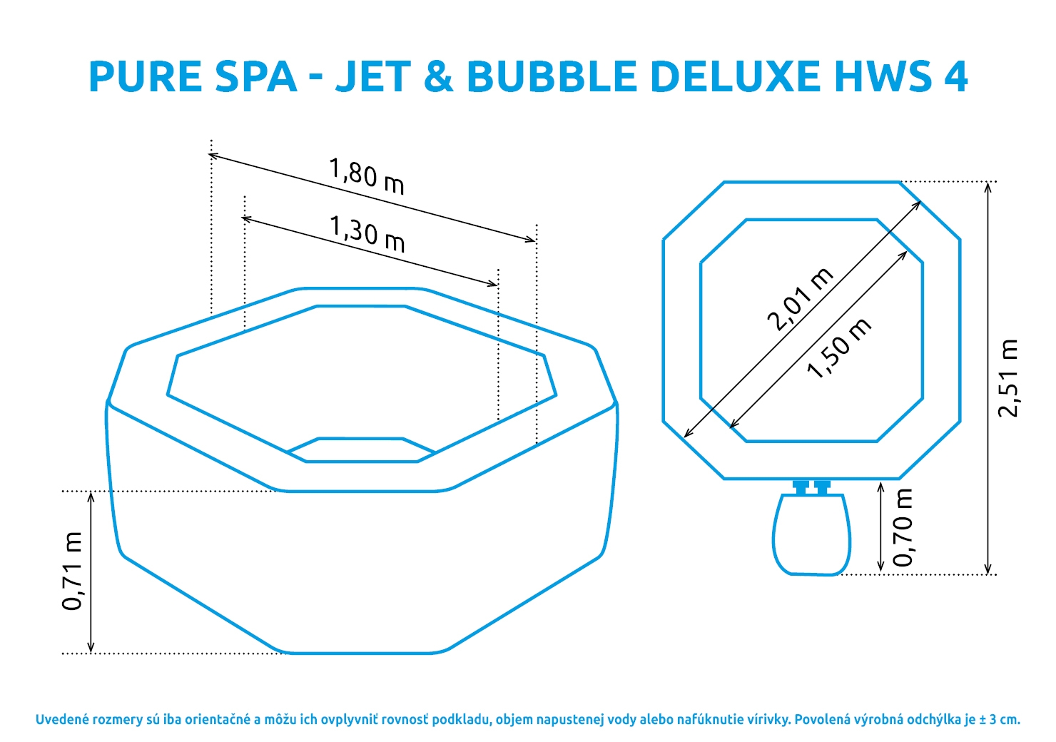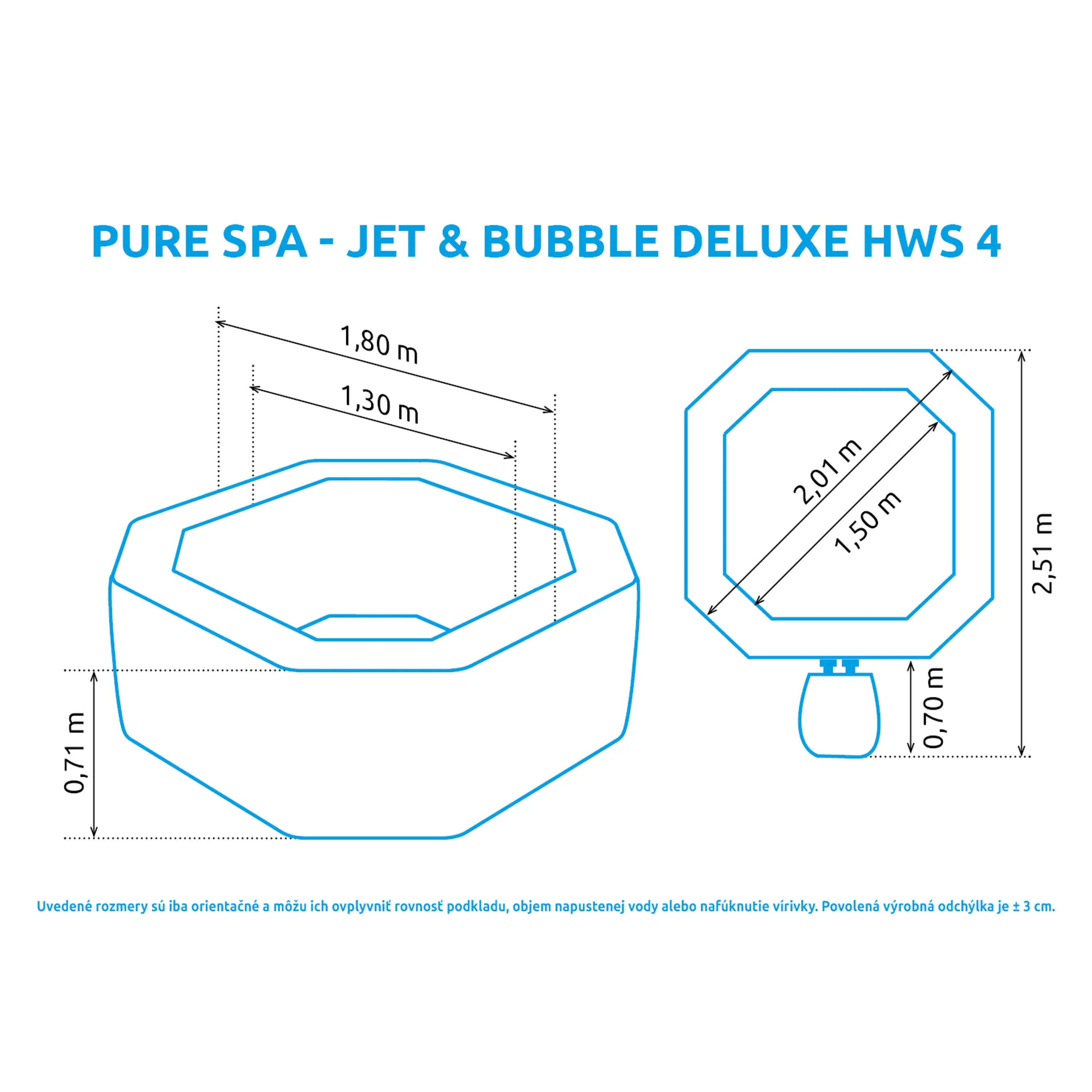 - Vonkajší priemer: 201 cm (po naplnení vodou, tolerancia ± 5%)