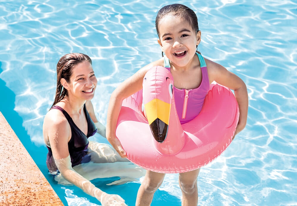 Detské nafukovacie koleso s rozmermi 76 x 55 cm s motívom plameniaka pre deti od 3 do 6 rokov.