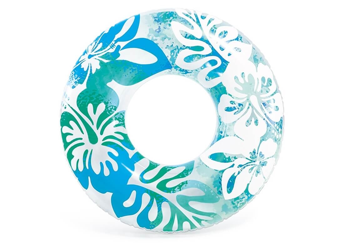 Nafukovacie koleso 91 cm - kvetinové vzory , modrá farba