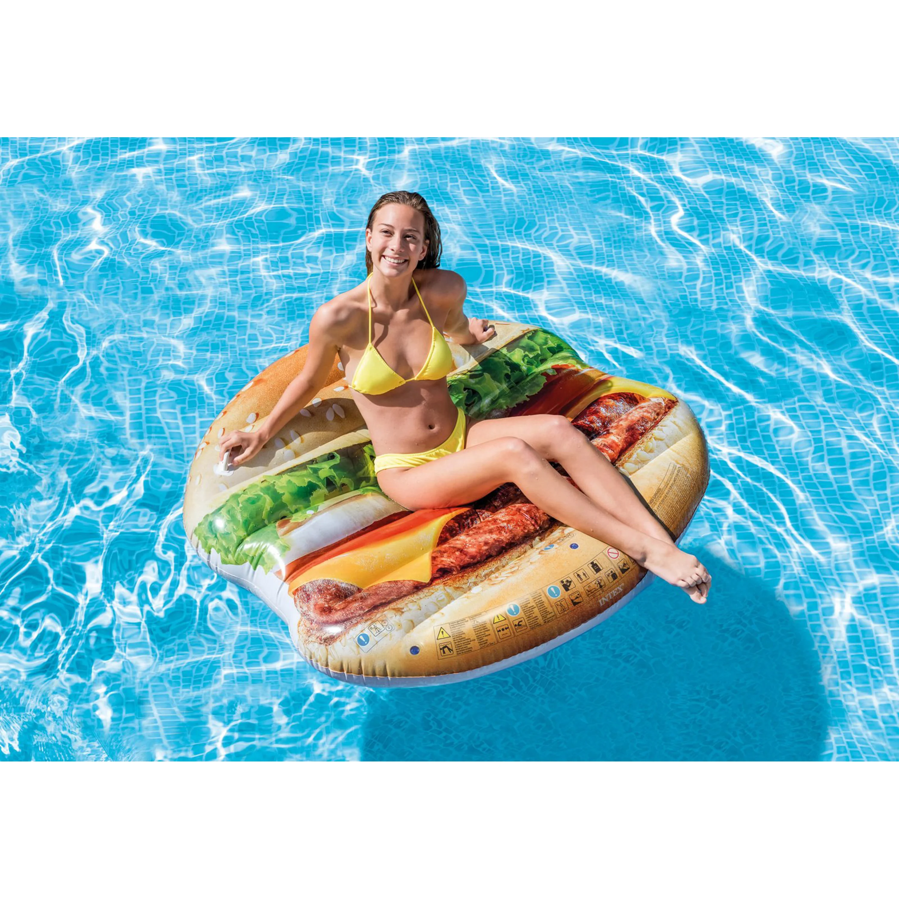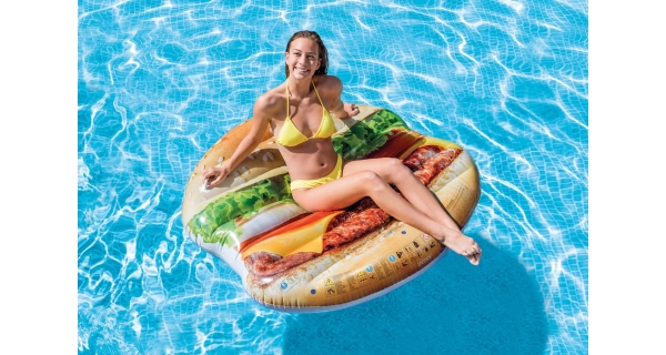 Nafukovacie lehátko s motívom hamburger bude skvelým a vtipným doplnkom na každom kúpalisku. Jednou z ďalších výhod sú veľké rozmery lehátka 145 x 142 cm.