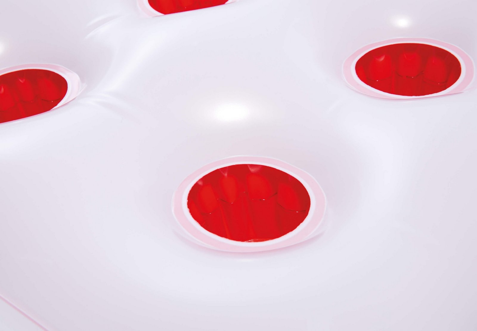 Nafukovacie lehátko s motívom jahody poteší deti aj mamičky. Ďalšou prednosťou sú veľké rozmery lehátka 168 x 142 cm. Potlač lehátka je inšpirovaná červenými jahodami v reálnom 3D vyobrazení.