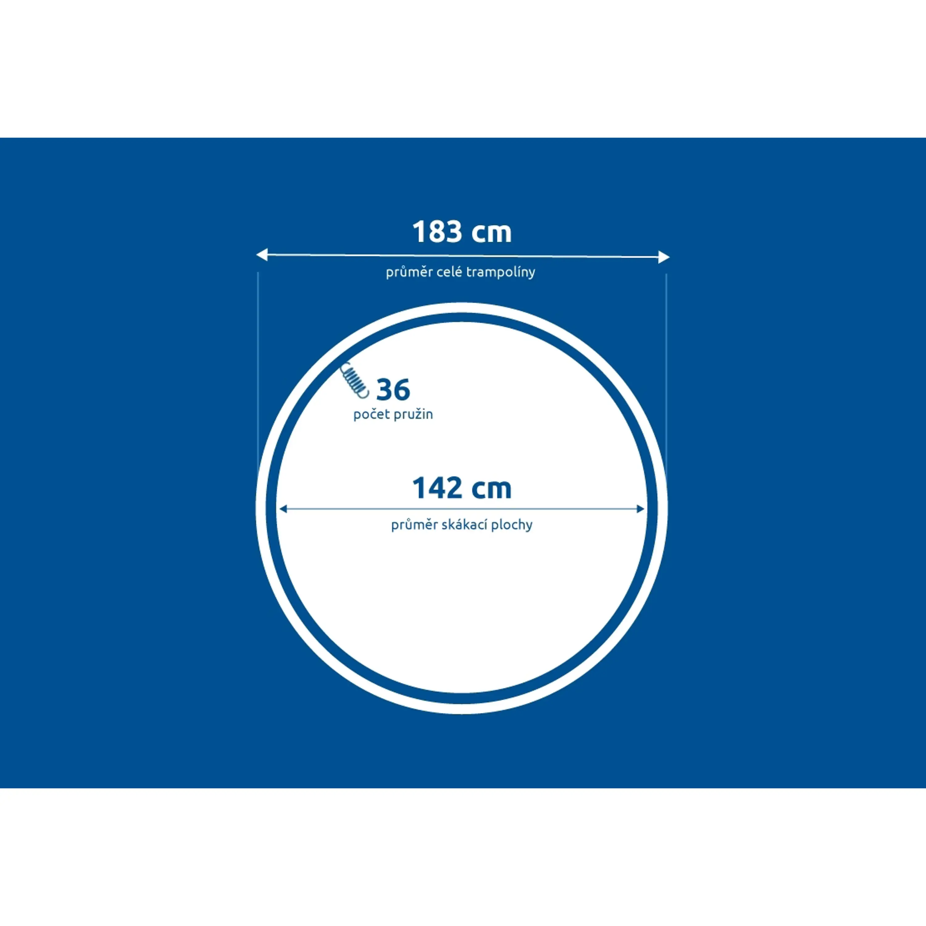 Priemer skákacej plochy: 142 cm (meria sa po vlákne tkaniny – od jedného okraja k druhému cez stred, tolerancia rozmeru ± 2 cm).