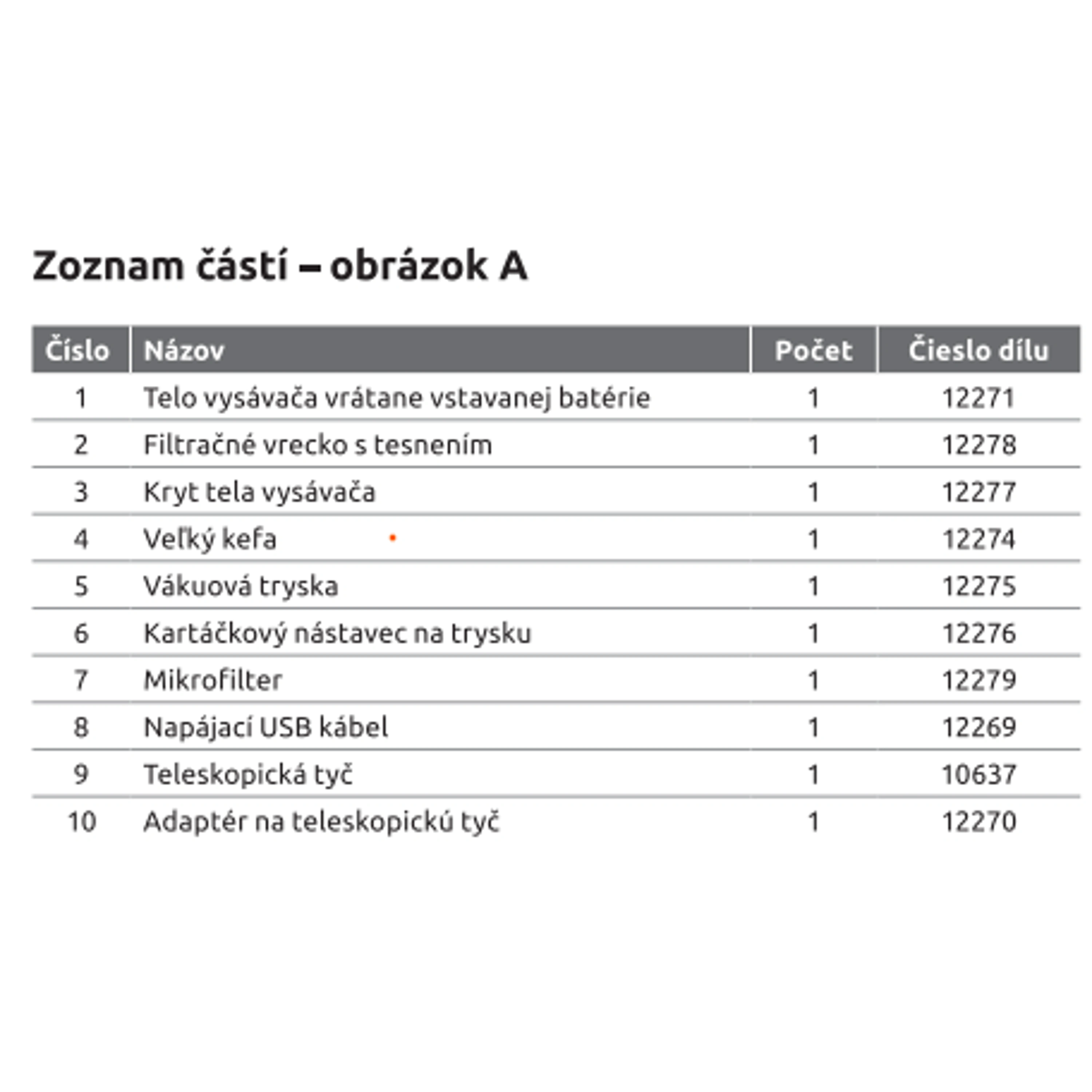 Náhradný napájací USB kábel 12269 k vysávaču Star Vac AKU (kód: 10800015).