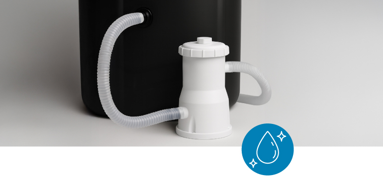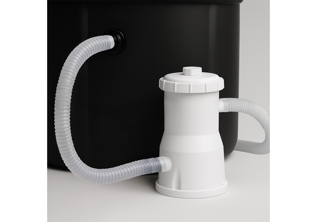 Súčasťou balenia ochladzovacej kade je kartušová filtrácia (vrátane hadíc a všetkých prepojovacích dielov), ktorá sa ľahko napája na priechody stenou. Vďaka tomu zostáva voda v kadi čistá a priezračná po dlhšiu dobu. Filtrácia efektívne odstraňuje nečistoty a zaisťuje pohodlnejšie a hygienickejšie používanie bez nutnosti častej výmeny vody.