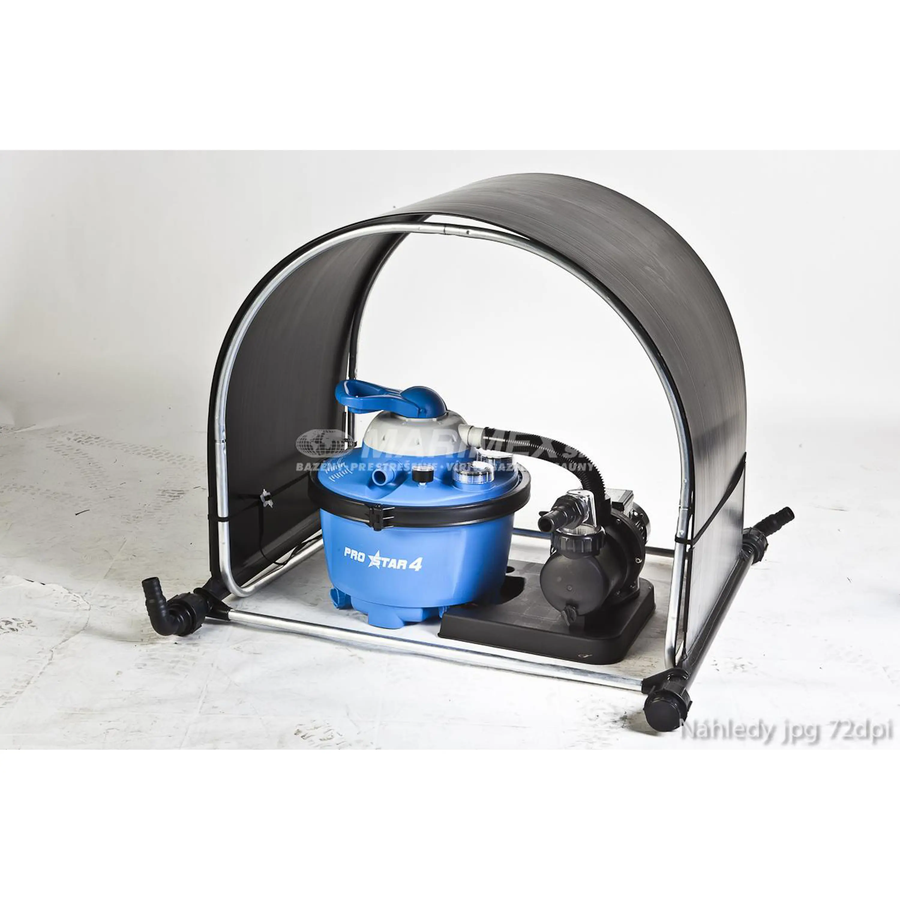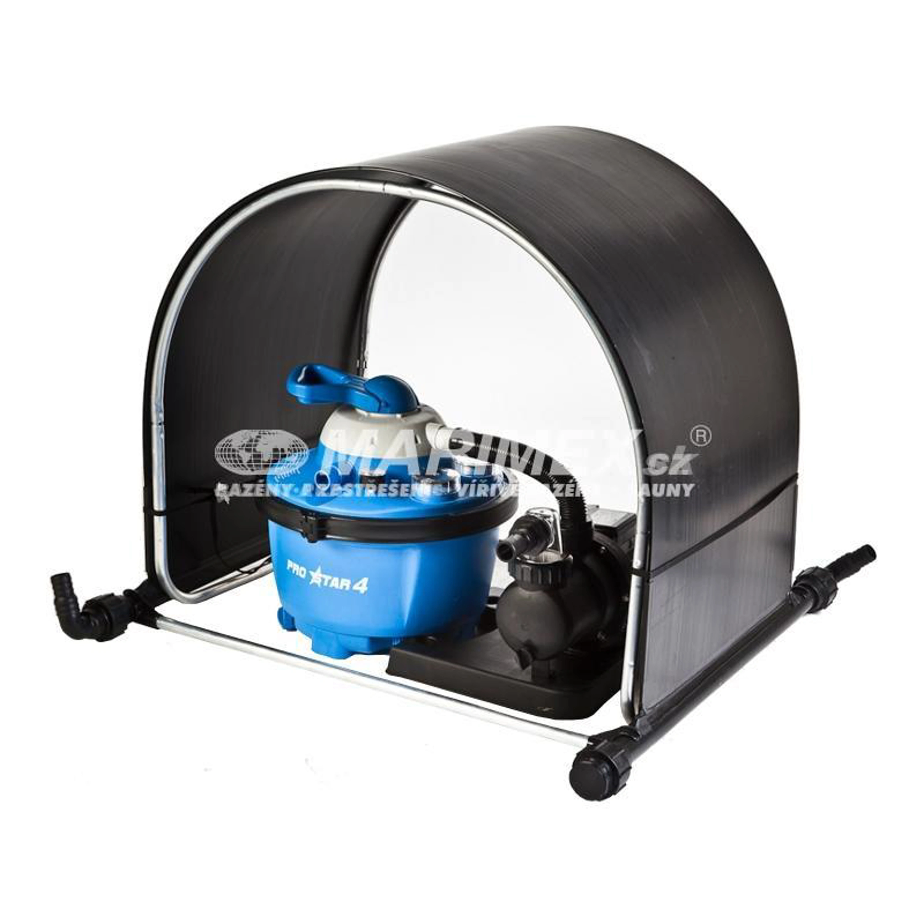 Domček je kompatibilný s našimi pieskovými filtráciami aj hadicami. Vhodné pre zvýšenie výhrevnosti všetkých našich bazénov.