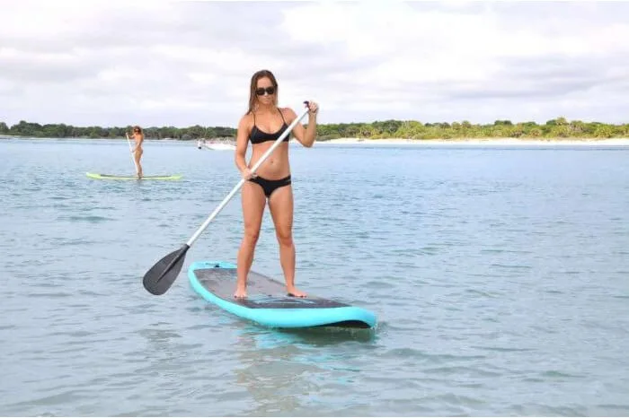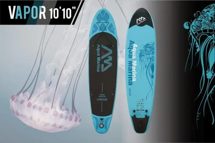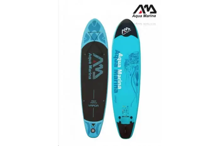 Nástupca legendárneho a najpredávanejšieho paddleboardu minulého roka (SPK2) iSUP AQUA MARINA VAPOR je určený začiatočníkom a pokročilým pre jazdy v kľudnejších vodách aj k schádzaniu menších vĺn. Skvelé riešený pre tích, ktorí si chcú užívať pádlovanie na vode, ale nemajú dostatok miesta v aute. Veľmi prívetivý model pre celú rodinu v modernom dizajne. Paddleboard je vďaka plochej,širokej prove veľmi stabilný, skvele zatáča a zároveň je dostatočne rýchly. Board je vyrobený z provtriednych materiálov odolných voči slanej vode a UV žiareniu, ľahko ho nafúknete, sfúknete a zbalíte do praktickej tašky. Protišmykový nášľap z EVA peny poskytuje pohodlie, stabilitu a bezpečnosť. Doska je osadená D-krúžkovými úchytmi na prove a vzadu pre pripevnenie bezpečnostného vodítka, elastickej bungee šnúry a pod. Gumená rukoväť uprostred dosky v kombinácii s nízkou hmotnosťou uľahčuje jeho prenášanie. V balení je navyše batoh, ručná nafukovacia pumpa s tlakomerom, lepiaca sada na opravy a elastické lanko pre uchytenie batožiny. Najlepšia kombinácia pomeru výkon/cena, odporúčame !