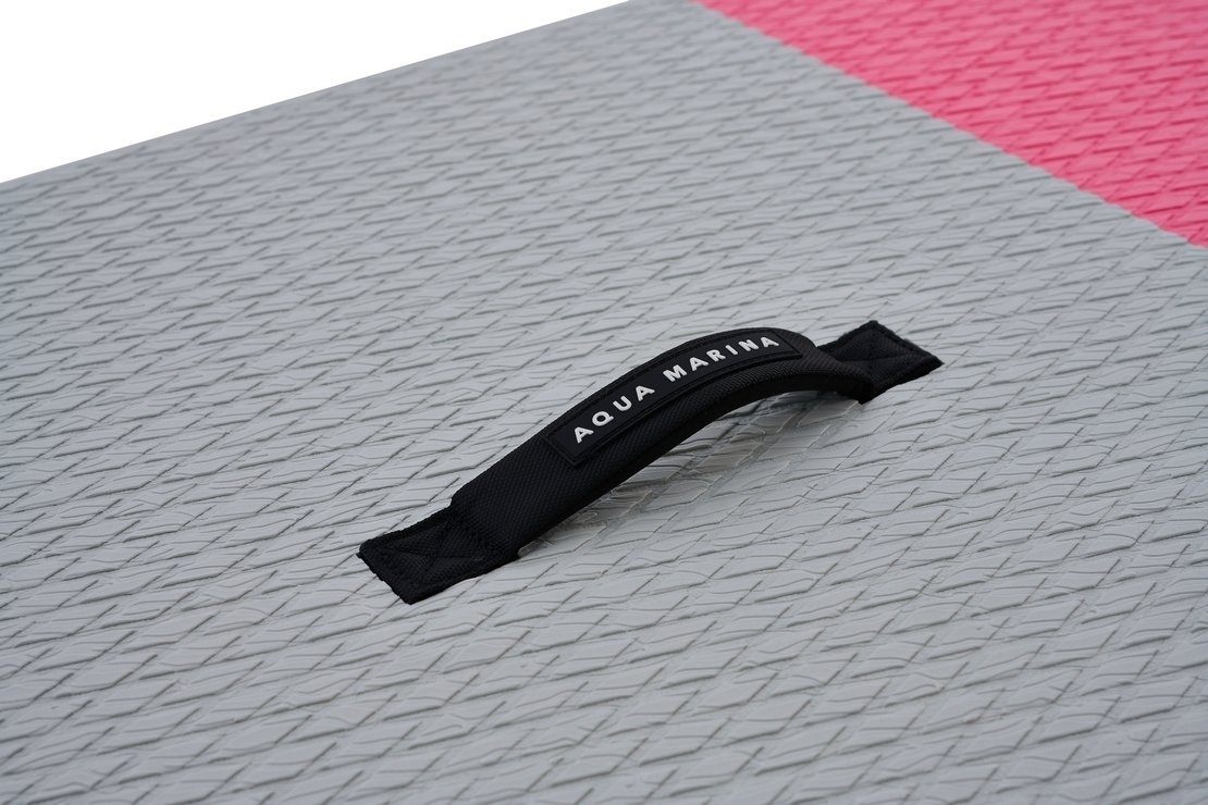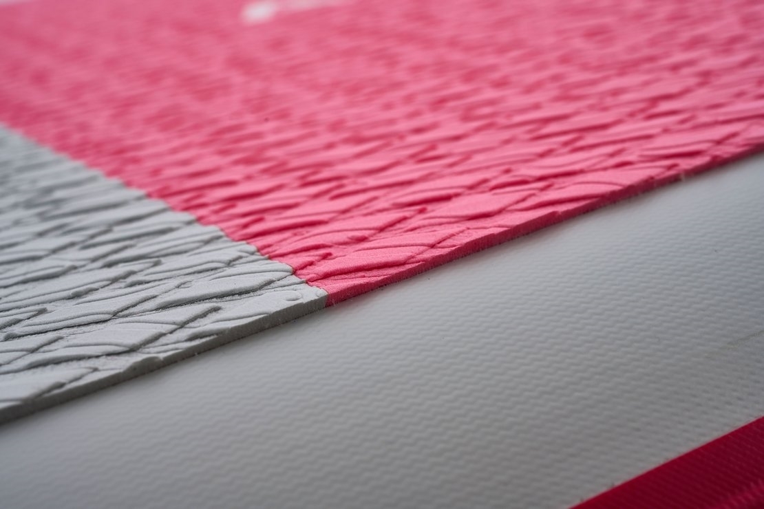 Pre vybavenie, ktoré si chcete vziať na cestu sú pripravené dve zóny na náklad, ktorý je zaistený pružnými gumičkami. Paddleboard Coral touring je vyrobený z ľahkej konštrukcie Drop Stitch Light, ktorá spolu so stredovým madlom zaistí ľahko manipuláciu na brehu. Paddleboard disponuje oceľovými okami, tzv. D-ringy, ktoré umožňujú pripnutie paddleboardového príslušenstva ako je poistný remeň (leash) či kajakovú sedačku (nie je súčasťou balenia). Obratnosť zaisťuje vyvýšená nášľapná vrstva (kick-pad) na päte paddleboardu.