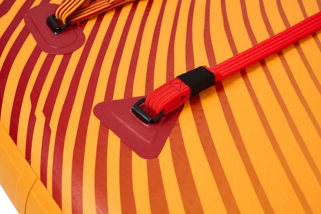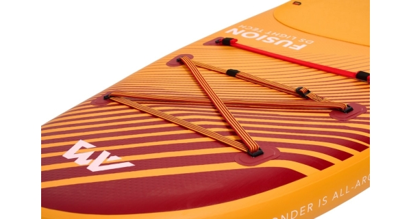 Paluba plaváka je potiahnutá pohodlným "footpadom" z lisovanej peny. Paddleboard Fusion je vyrobený z ľahkej konštrukcie Drop Stitch Light, ktorá spolu so stredovým madlom zaistí ľahkú manipuláciu na brehu. Paddleboard disponuje oceľovými okami, tzv. D-ringy, ktoré umožňujú pripnutie paddleboardového príslušenstva ako je poistný remeň (leash) či kajakovú sedačku (nie je súčasťou balenia).