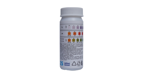 Balenie 25 testovacích prúžkov pre kyslíkovú chémiu. Meria kyslík, pH a celkovú alkalitu.