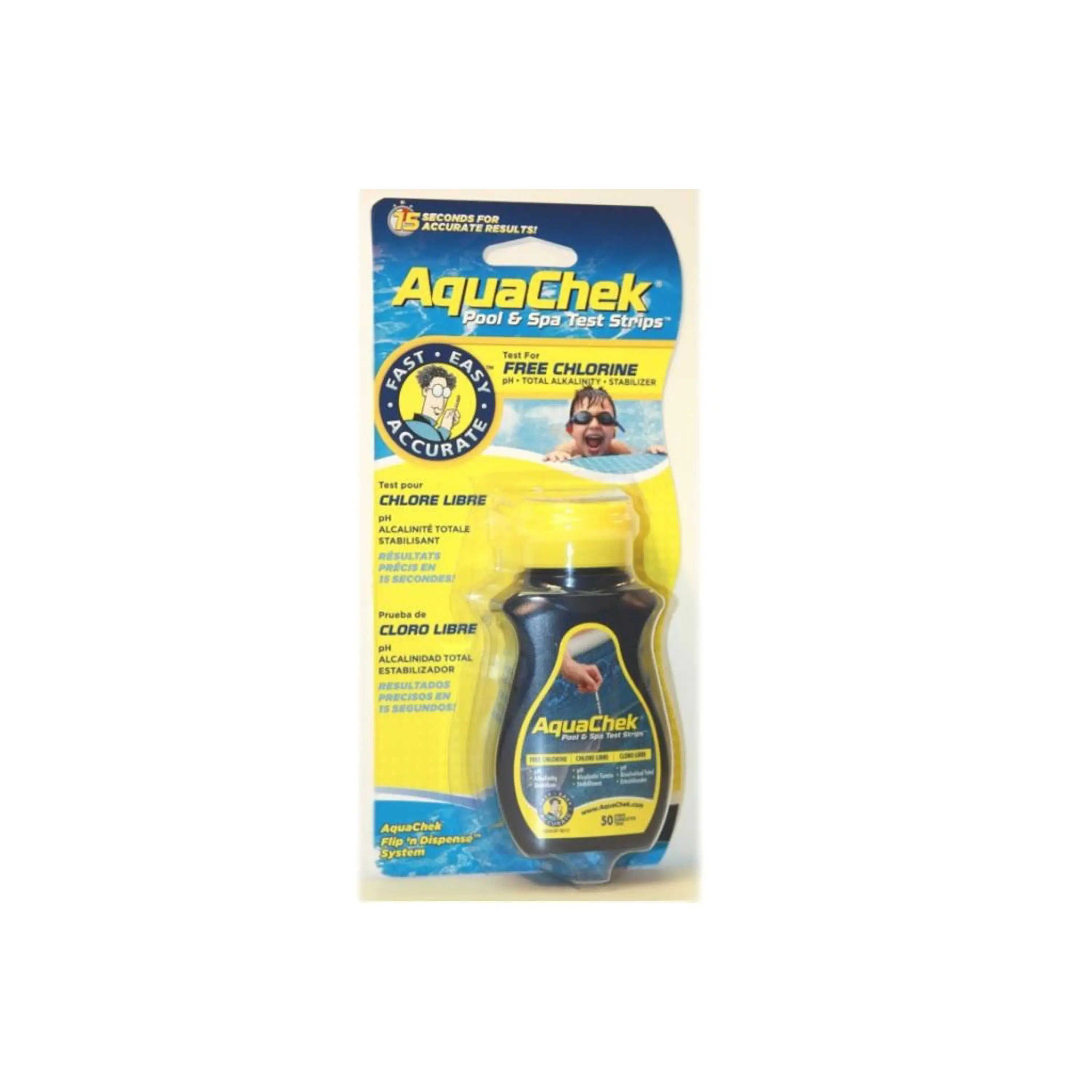 AquaChek tester 4v1 - prúžkový tester. Testujete: Voľný chlór, pH, Celkovú alkalitu, kyseliny kyanurovej (Stabilizátor). Ideálne pre tých, ktorí dávajú prednosť Chlóru ako hlavnému desinfakčnímu prostriedku v bazéne alebo vo vírivkách. Test 4v1 AquaChek zahŕňa aj testovanie kyseliny kyanurovej, ktorá je obzvlášť dôležitá vo vonkajších vírivkách alebo v bazénoch, lebo chlór býva rozptýlený UV žiarením.