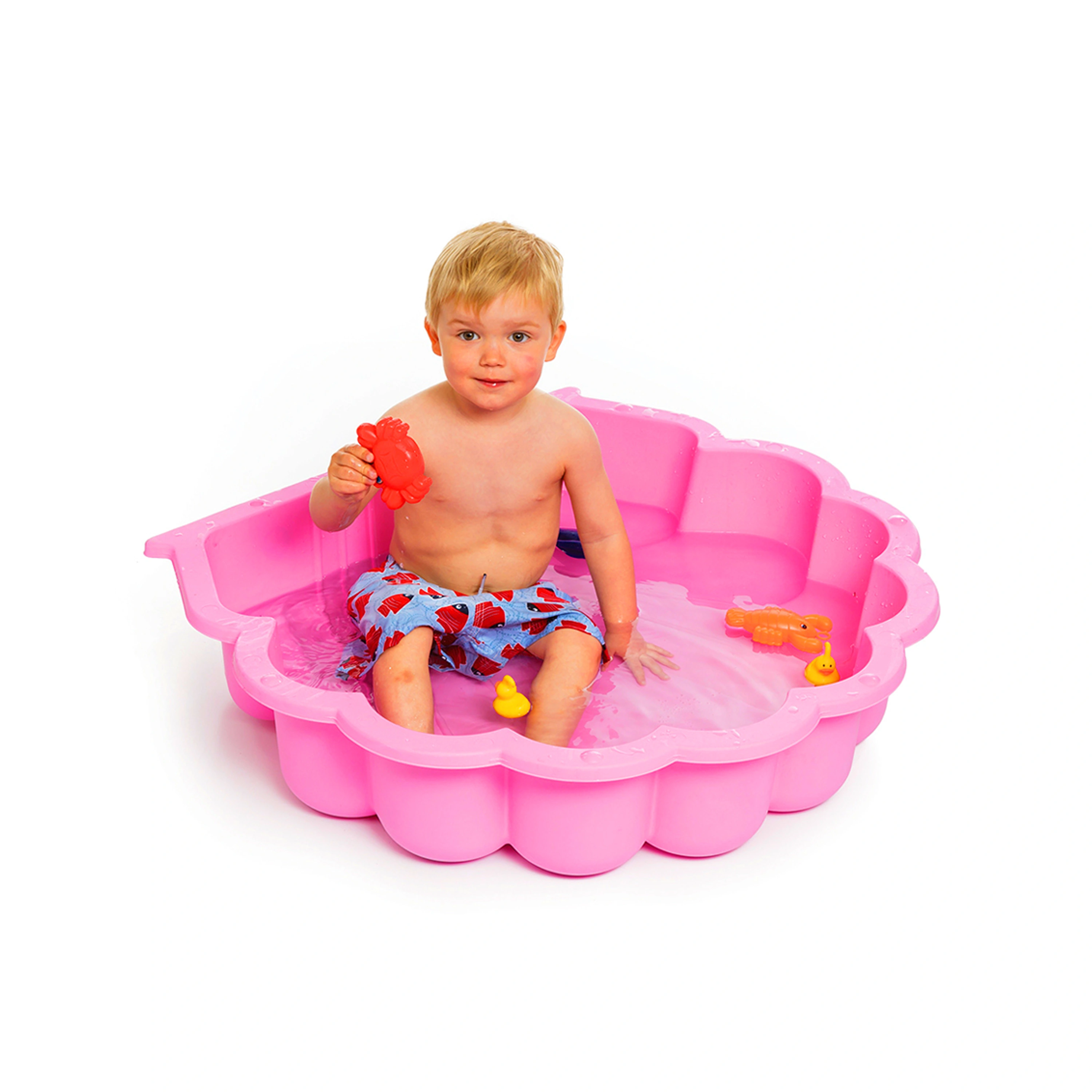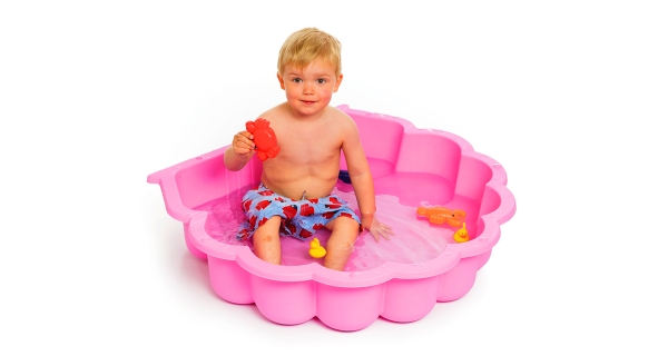 Pieskovisko / bazénik v tvare mušle s krytom. |
