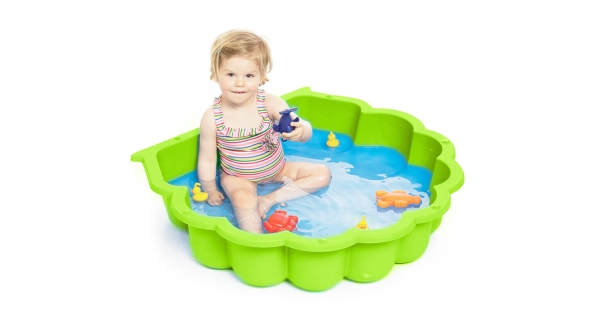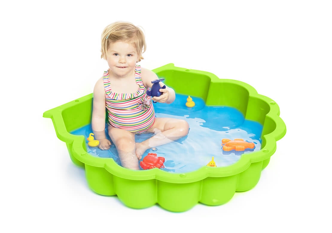Pieskovisko / bazénik v tvare mušle s krytom. |