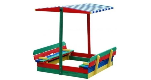 Farebné pieskovisko sa hodí na každú záhradu či dvor. Pieskovisko ponúka dostatočne veľkú plochu pre hranie, je voľne prístupné zo všetkých strán. Pri výrobe bolo použité sušené drevo borovice. Proti poveternostným vplyvom je chránené zdraviu neškodným náterom. Všetky prvky pieskoviská sú ohobľované.