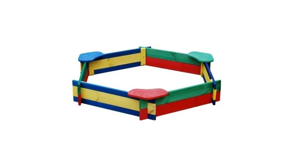Farebné pieskovisko sa hodí na každú záhradu či dvorček. Vybavené je širokými sedákmi pre pohodlné sedenie. Pieskovisko ponúka dostatočne veľkú plochu na hranie, je voľne prístupné zo všetkých strán. Pri výrobe bolo použité sušené drevo borovice. Proti poveternostným vplyvom je chránené zdravia neškodným náterom. Všetky prvky pieskoviska sú ohoblované.