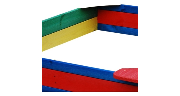 Farebné pieskovisko sa hodí na každú záhradu či dvorček. Vybavené je širokými sedákmi pre pohodlné sedenie. Pieskovisko ponúka dostatočne veľkú plochu na hranie, je voľne prístupné zo všetkých strán. Pri výrobe bolo použité sušené drevo borovice. Proti poveternostným vplyvom je chránené zdravia neškodným náterom. Všetky prvky pieskoviska sú ohoblované.