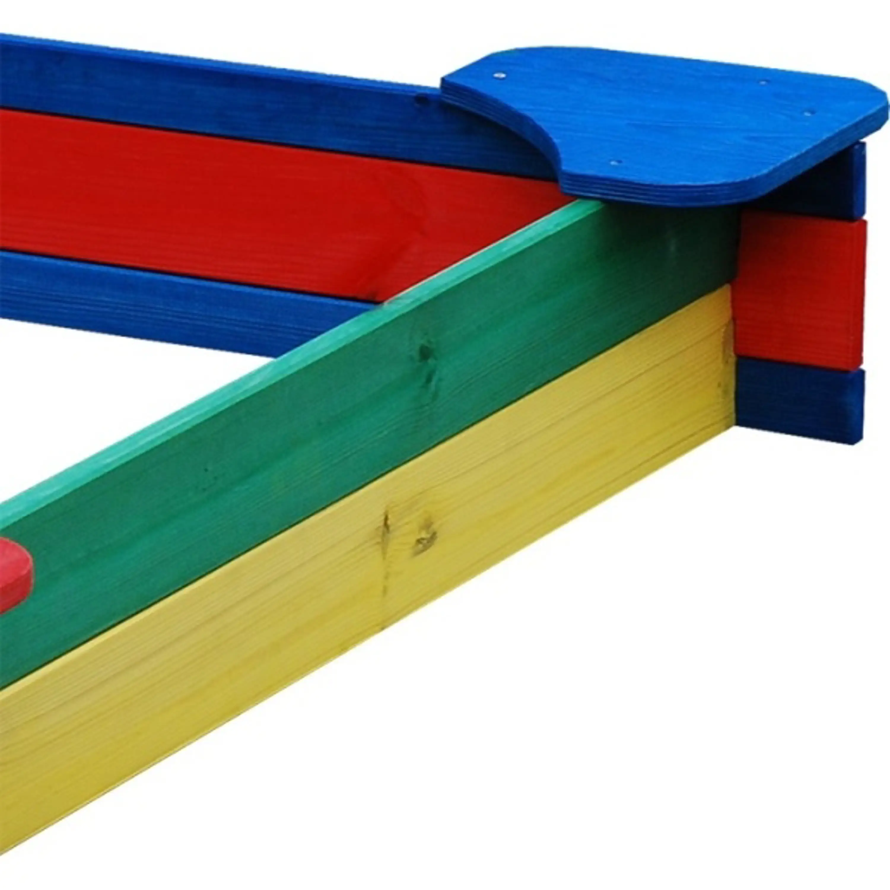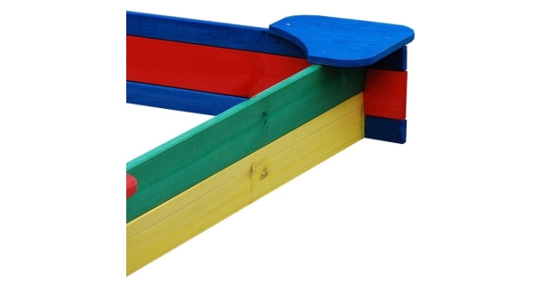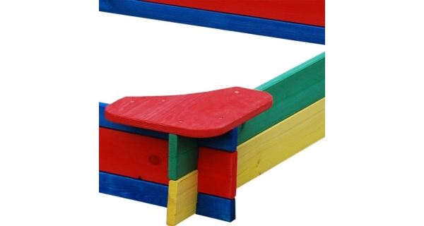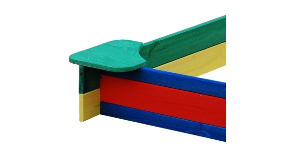 Farebné pieskovisko sa hodí na každú záhradu či dvorček. Vybavené je širokými sedákmi pre pohodlné sedenie. Pieskovisko ponúka dostatočne veľkú plochu na hranie, je voľne prístupné zo všetkých strán. Pri výrobe bolo použité sušené drevo borovice. Proti poveternostným vplyvom je chránené zdravia neškodným náterom. Všetky prvky pieskoviska sú ohoblované.