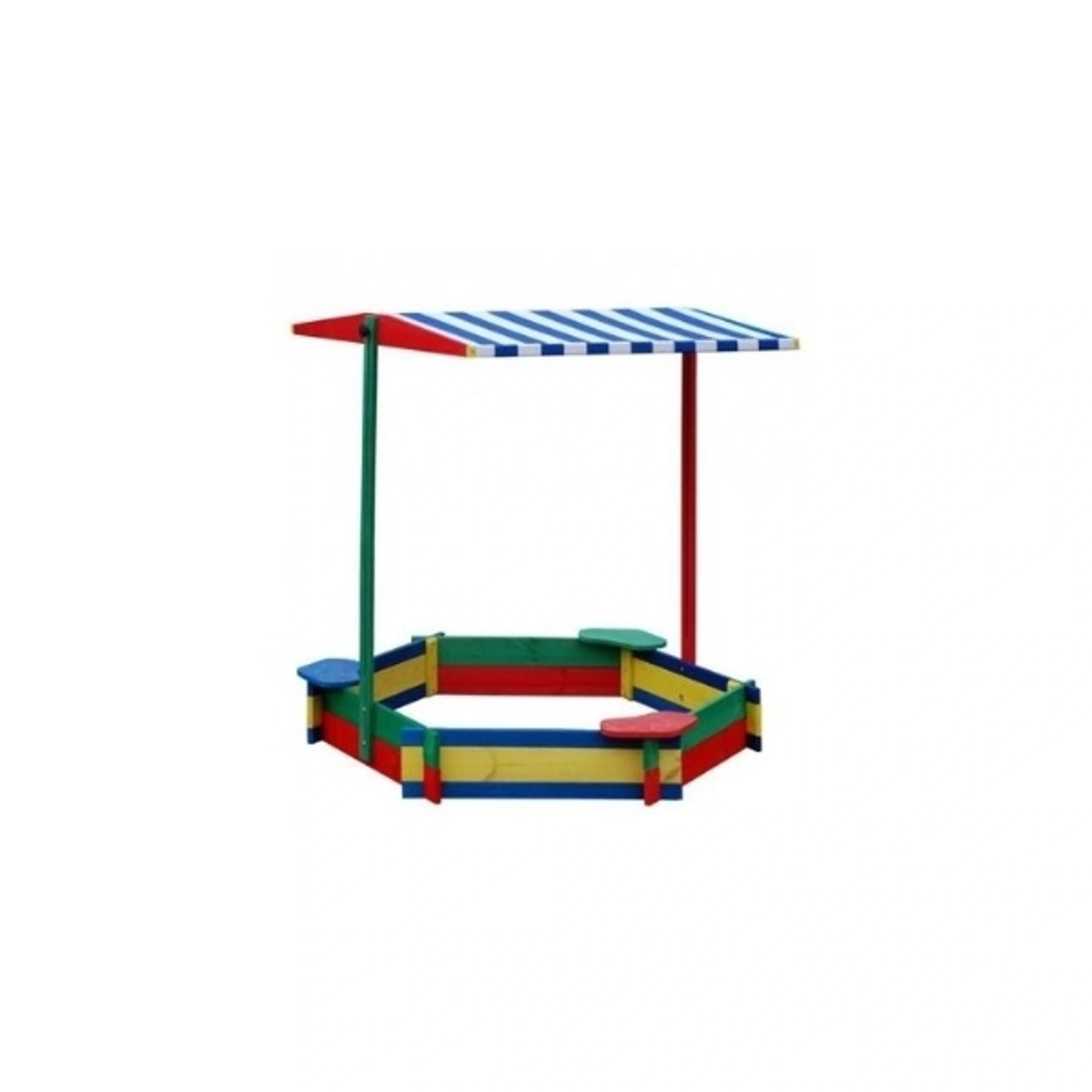 Detské pieskovisko s tromi širokými sedadlami je pohodlné pre sedenie a nemalo by chýbať na žiadnej záhrade či dvore. Má dostatočne veľkú plochu pre hranie a je voľne prístupné zo všetkých strán. Farebné pieskovisko je obohatené o striešku, ktorá ochráni deti pred slnkom. Hranie na pieskovisku je o to zábavnejšie.
