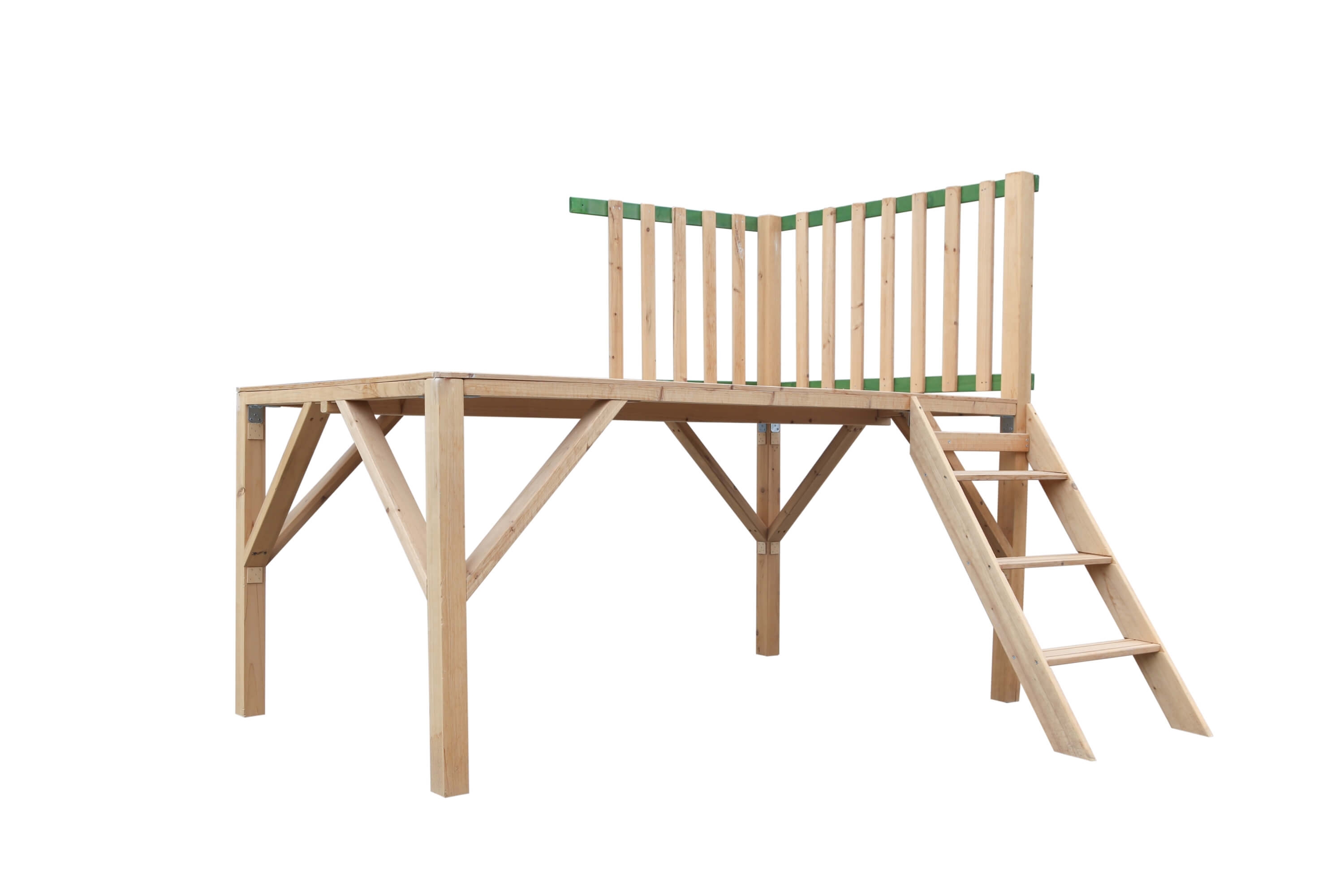 Platforma k drevenému domčeku Stajňa. Drevo nie je povrchovo ošetrené, preto ho odporúčame impregnovať, či natrieť. Platforma obsahuje zábradlie a schodíky. Je dodávaná vrátane spojovacieho a kotviaceho materiálu.