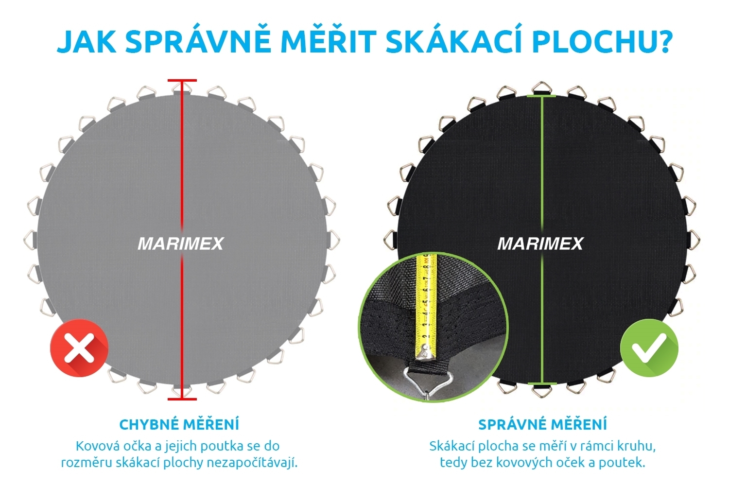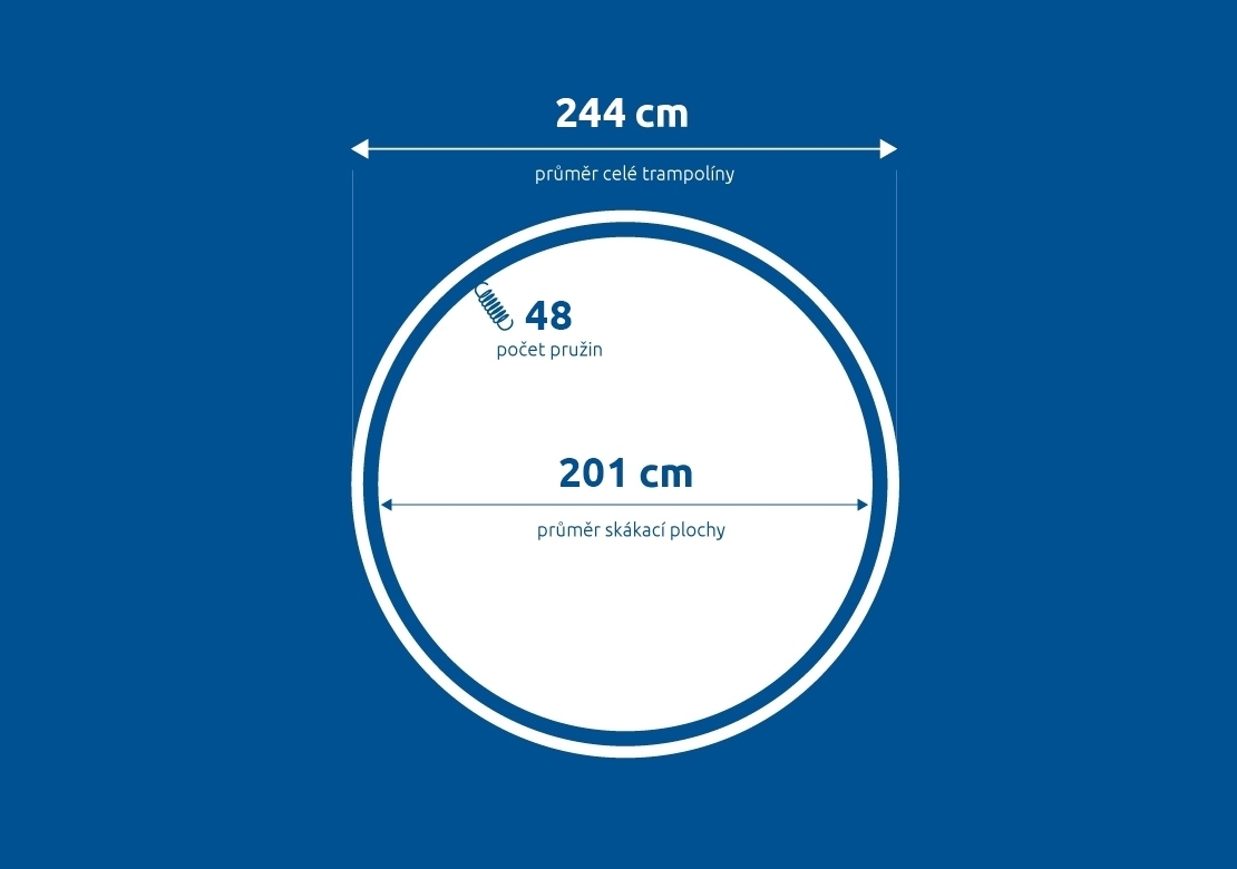 Priemer skákacej plochy: 201 cm (meria sa po vlákne tkaniny – od jedného okraja k druhému cez stred, tolerancia rozmeru ± 2 cm).