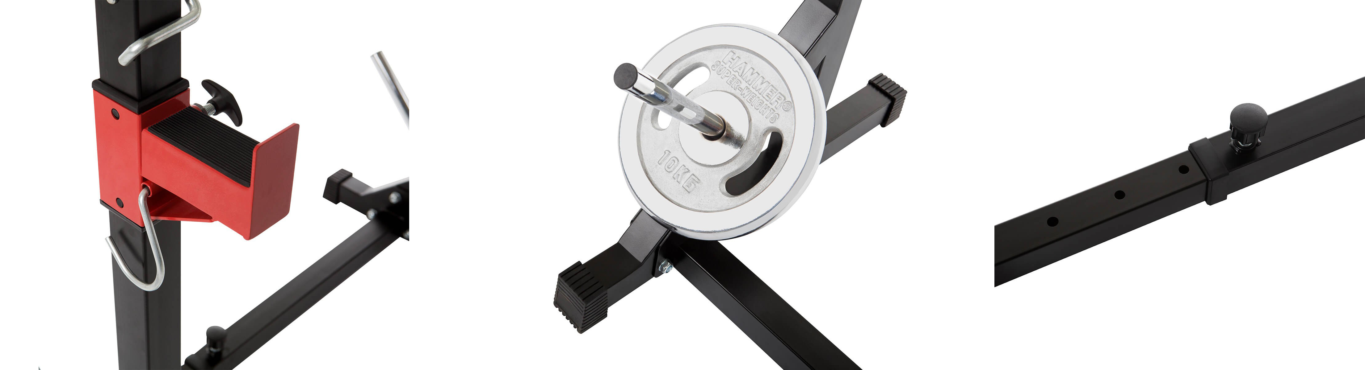 Nohy, hruď, ramená, ruky aj chrbát, s HAMMER Core 2.0 posilňujete každý sval vo Vašom tele! Výška a šírka stojana môže byť nastavená behom pár sekúnd a dá Vám tak požadovanú podporu pre cestu k Vášmu vysnenému telu. Stojan je možné zložiť behom chvíľky, je teda hneď pripravený na použitie.
