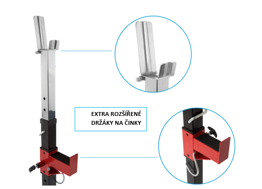 Veľmi dlhý stojan Vám umožní posúvať svoje hranice, pretože si budete istí, že činku vždy bez problémov do stojana usadíte. Veľmi intenzívne cvičenie s ťažkými váhami doma už nie je žiadny problém. Vďaka svojej pevnej štruktúre a sofistikovanému dizajnu je konštrukcia úplne stabilná, takže sa môžete plne sústrediť na tréning. Stojan na činku a bezpečnostné držiaky na závažie udržia až 120 kg. Sú teda vhodné na profesionálne účely.
