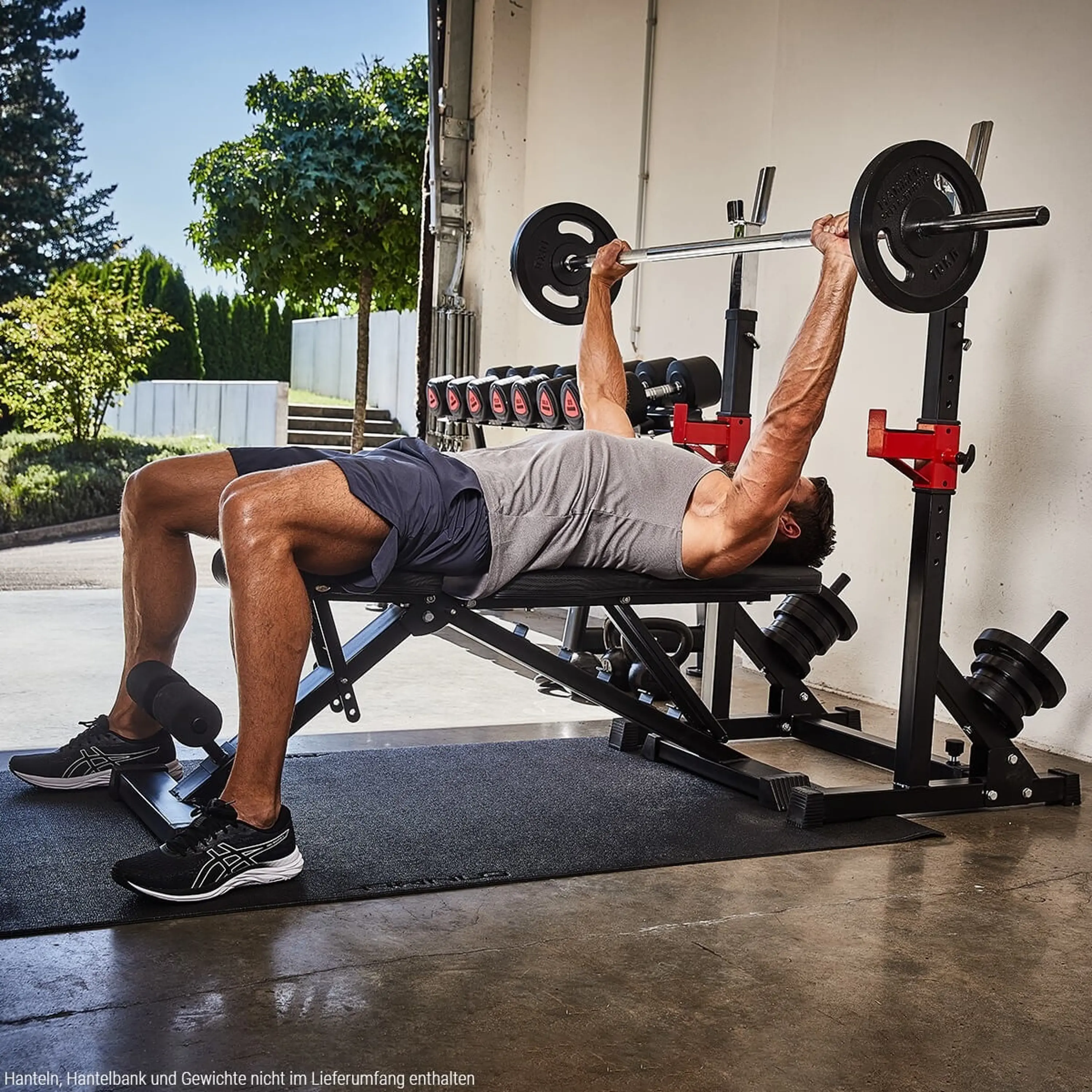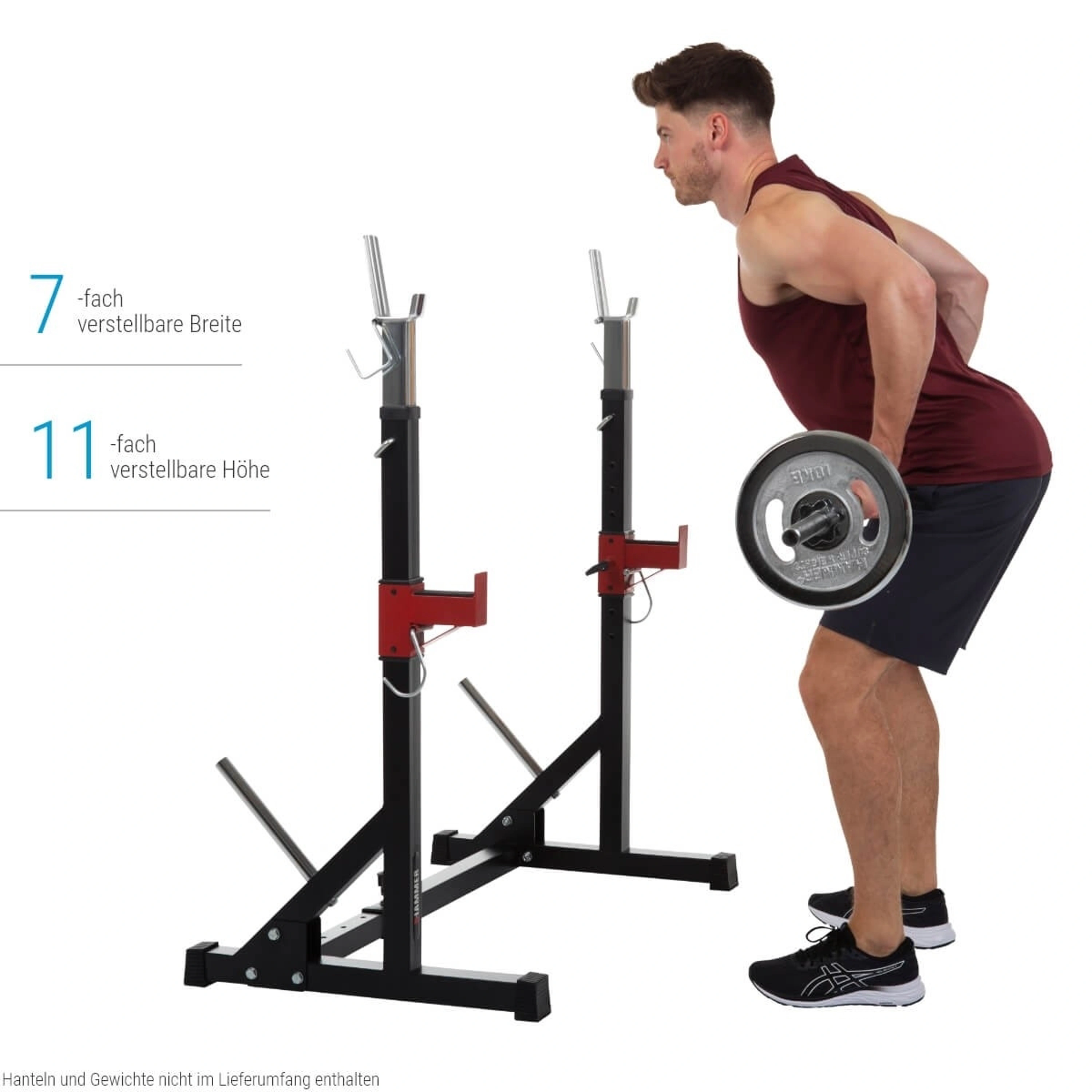 Veľmi dlhý stojan Vám umožní posúvať svoje hranice, pretože si budete istí, že činku vždy bez problémov do stojana usadíte. Veľmi intenzívne cvičenie s ťažkými váhami doma už nie je žiadny problém. Vďaka svojej pevnej štruktúre a sofistikovanému dizajnu je konštrukcia úplne stabilná, takže sa môžete plne sústrediť na tréning. Stojan na činku a bezpečnostné držiaky na závažie udržia až 120 kg. Sú teda vhodné na profesionálne účely.