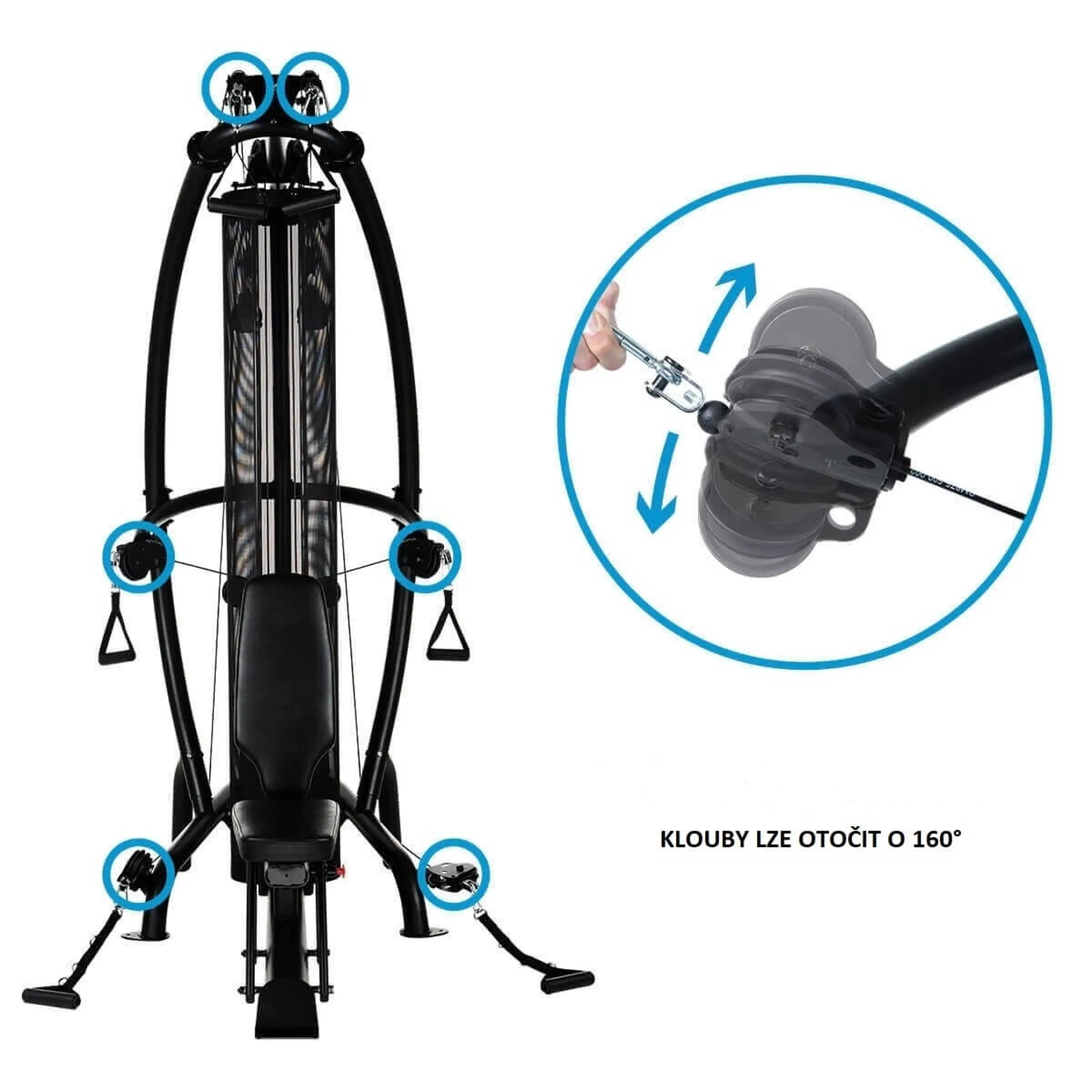 Cvičenie na kladkovom systéme má znateľný pozitívny vplyv na kĺbový aparát, ktorý nie je zďaleka tak namáhavý na vaše kĺby, ako pri klasickom silovom tréningu s činkami a zaručuje tak veľmi kvalitný a účinný tréning.